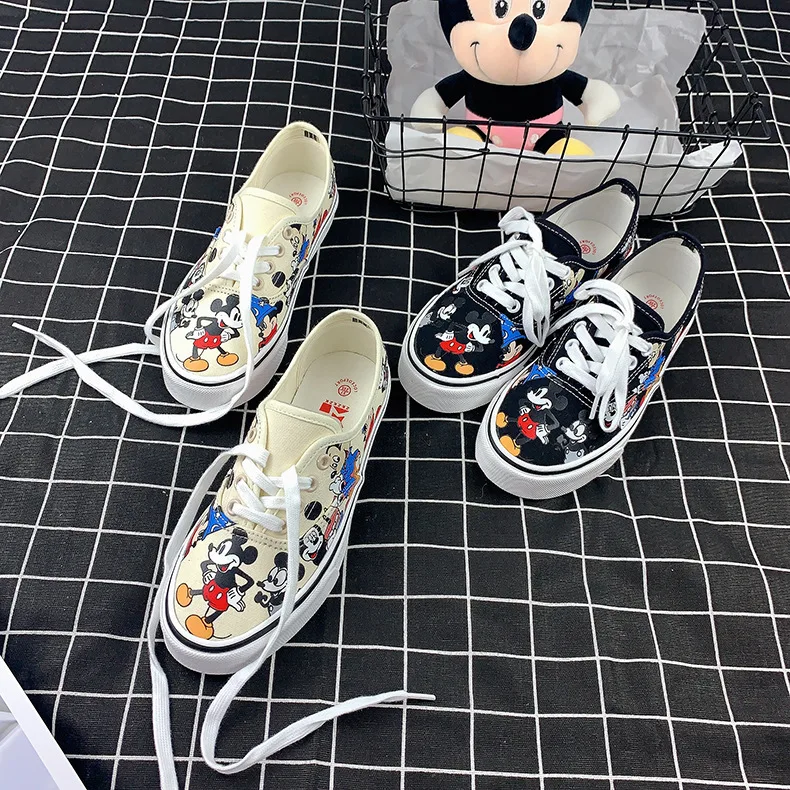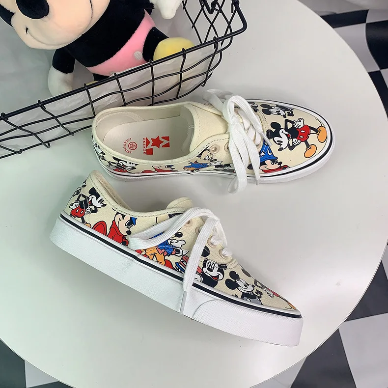 Белые дамские туфли Disney с Микки Маусом, весенние однотонные кроссовки в Корейском стиле, повседневная спортивная обувь для скейтборда, для тенниса