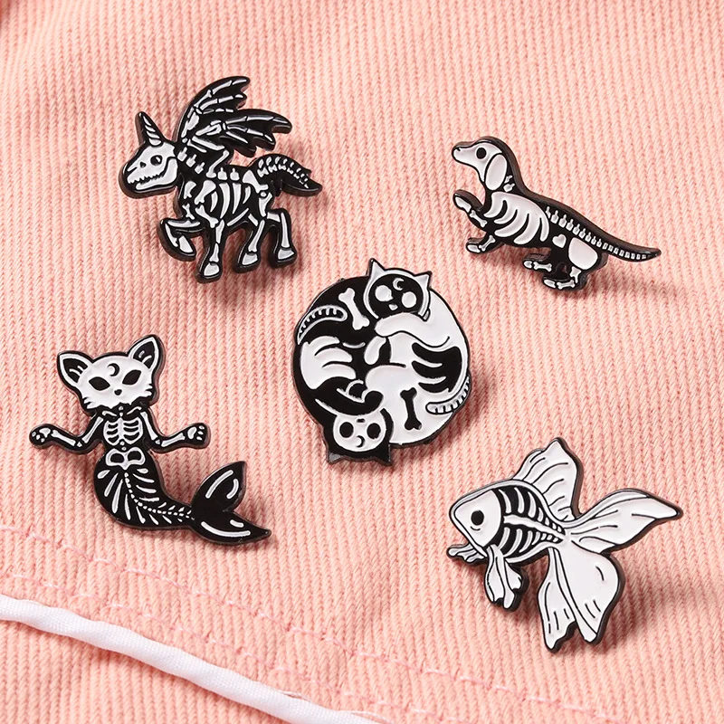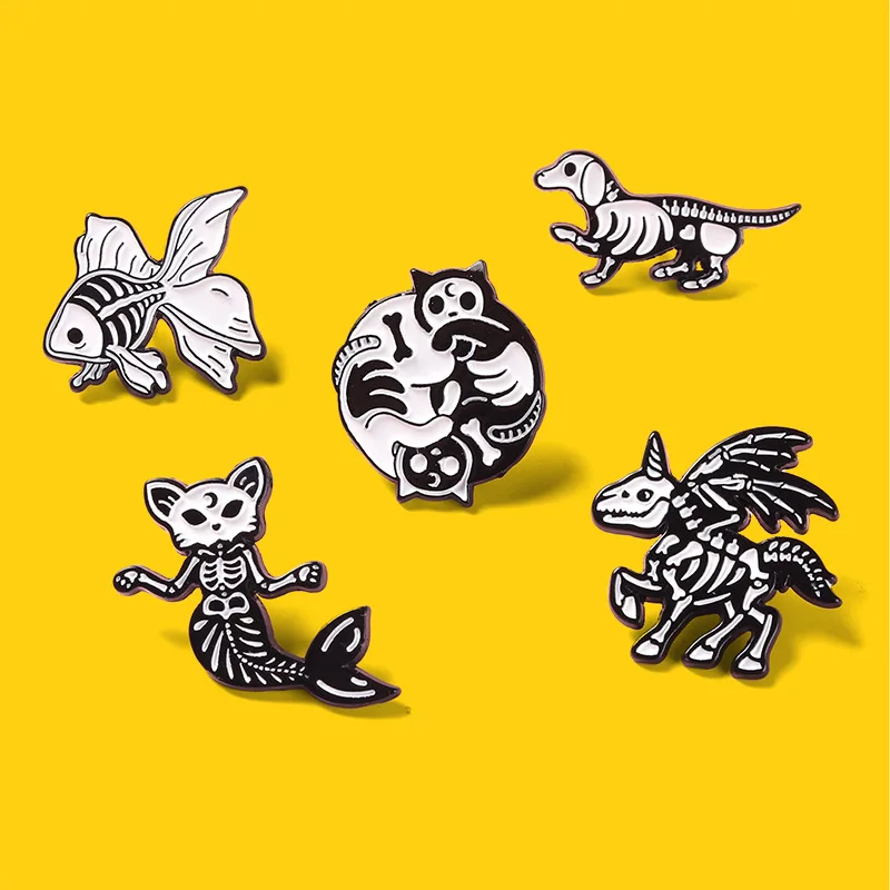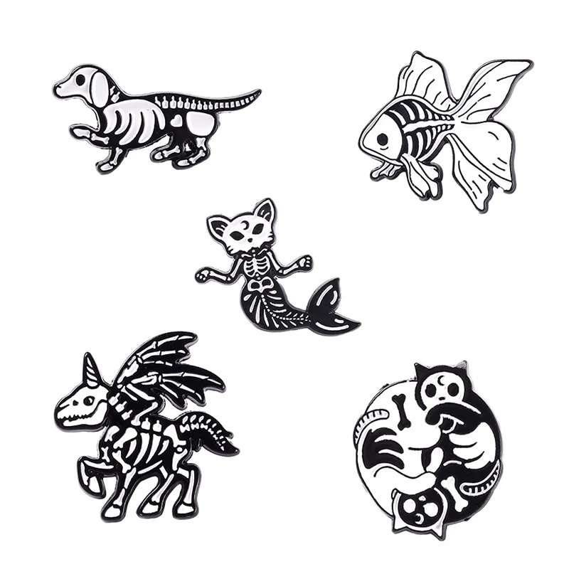 Эмалированные булавки в виде скелета животных, кошка, лошадь, Череп...