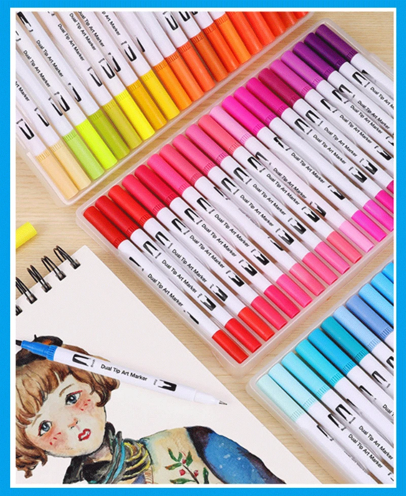 Набор фломастеров 12 шт.компл., акварельная ручка, кисть, маркеры с двойным наконечником, тонкий фломастер для рисования в цилиндре, журнал, художественные маркеры, цветные ручки