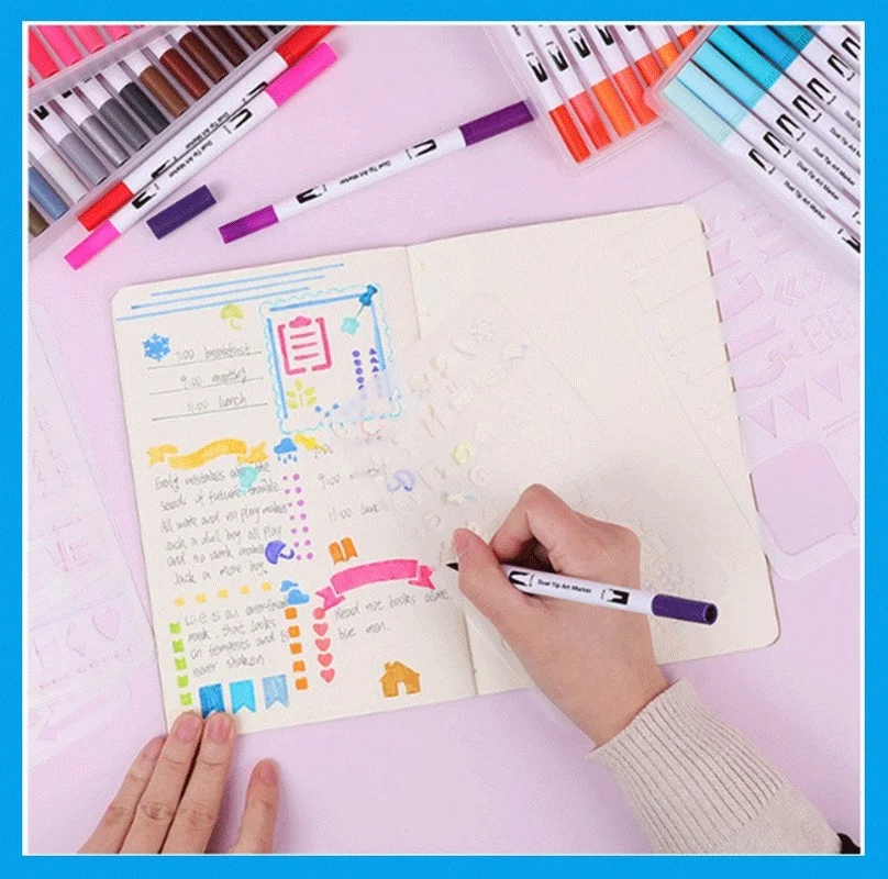 12 шт./компл. набор маркеров Акварельная ручка кисточки маркеры двойной наконечник Fineliner Рисование для bullet Journal Art Маркеры цвета ручки