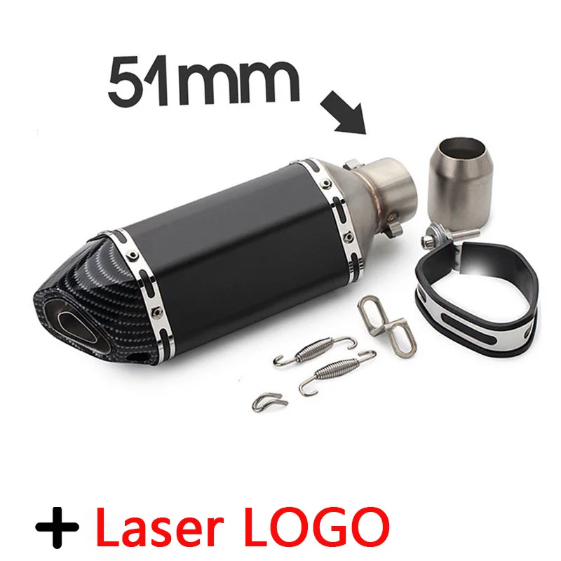Это универсальная Модифицированная выхлопная труба мотоцикла, она подходит для моделей мотоциклов калибра 51 мм (с адаптером 36-51 мм). Этот продукт был изготовлен из высококачественной нержавеющей стали и Украшен узором из углеродного волокна. Отличное качество изготовления и хорошая текстура. Для очень немногих моделей установка может потребовать простой сварки и сборки.