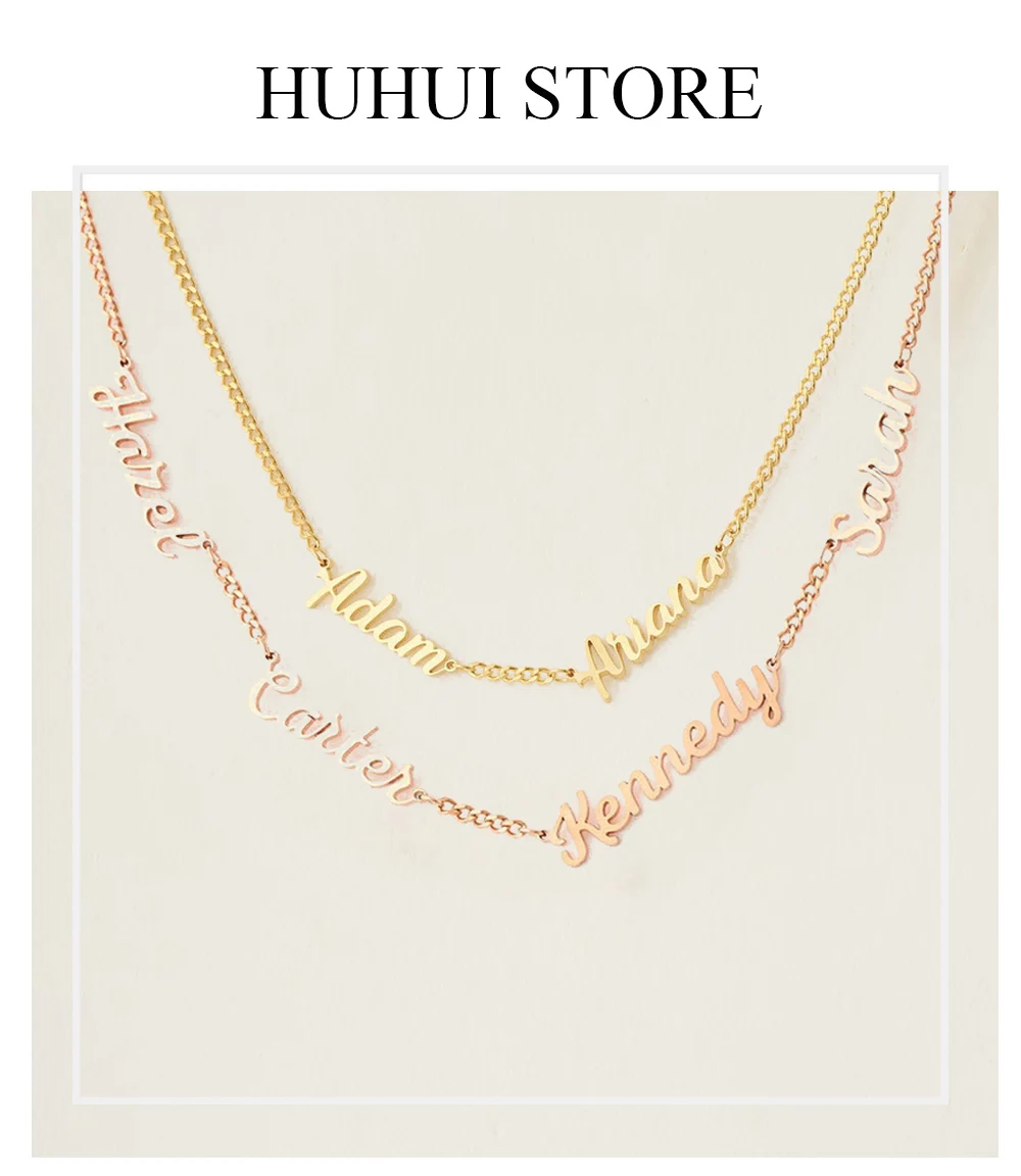 HUHUI индивидуальное ожерелье с различными именами кулон из нержавеющей стали кубинская цепь ювелирные изделия для женщин семейный Рождественский подарок