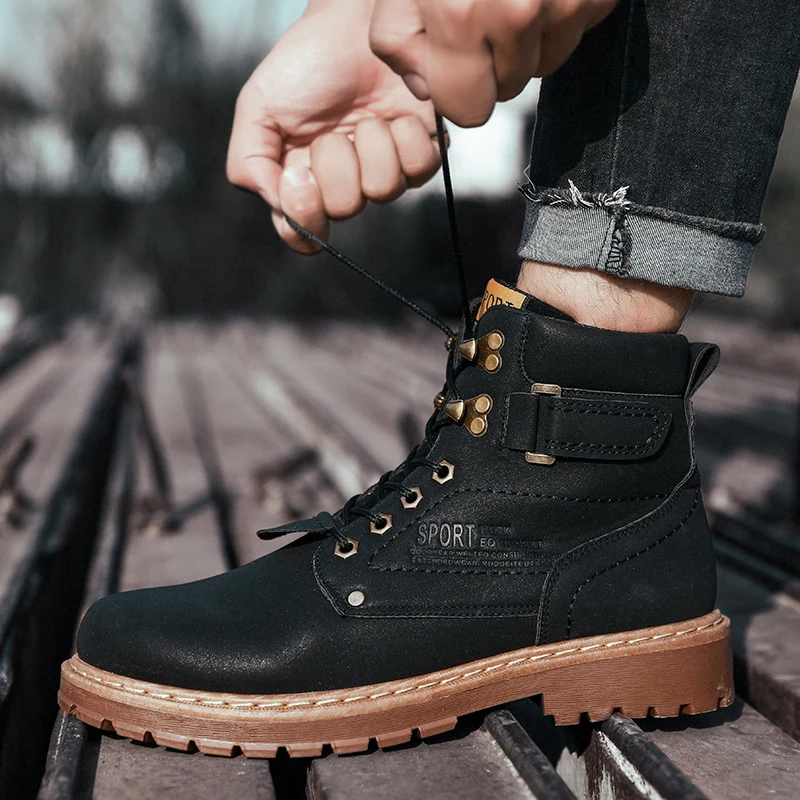 Теплые Зимние ботильоны мужская повседневная обувь на шнуровке осенние кожаные водонепроницаемые рабочие ботинки мужские военные армейские ботинки для мужчин