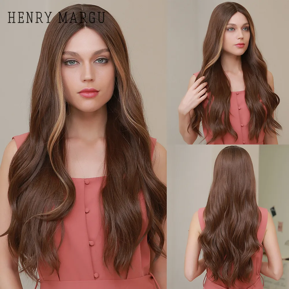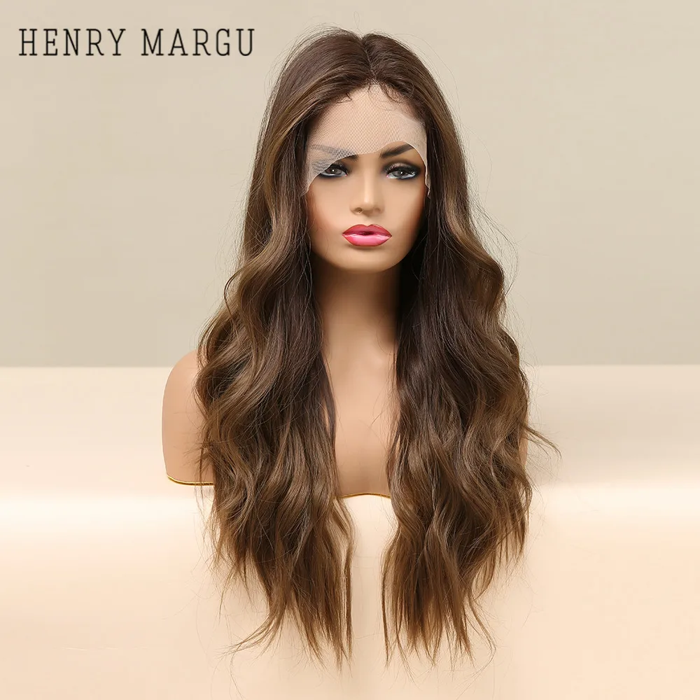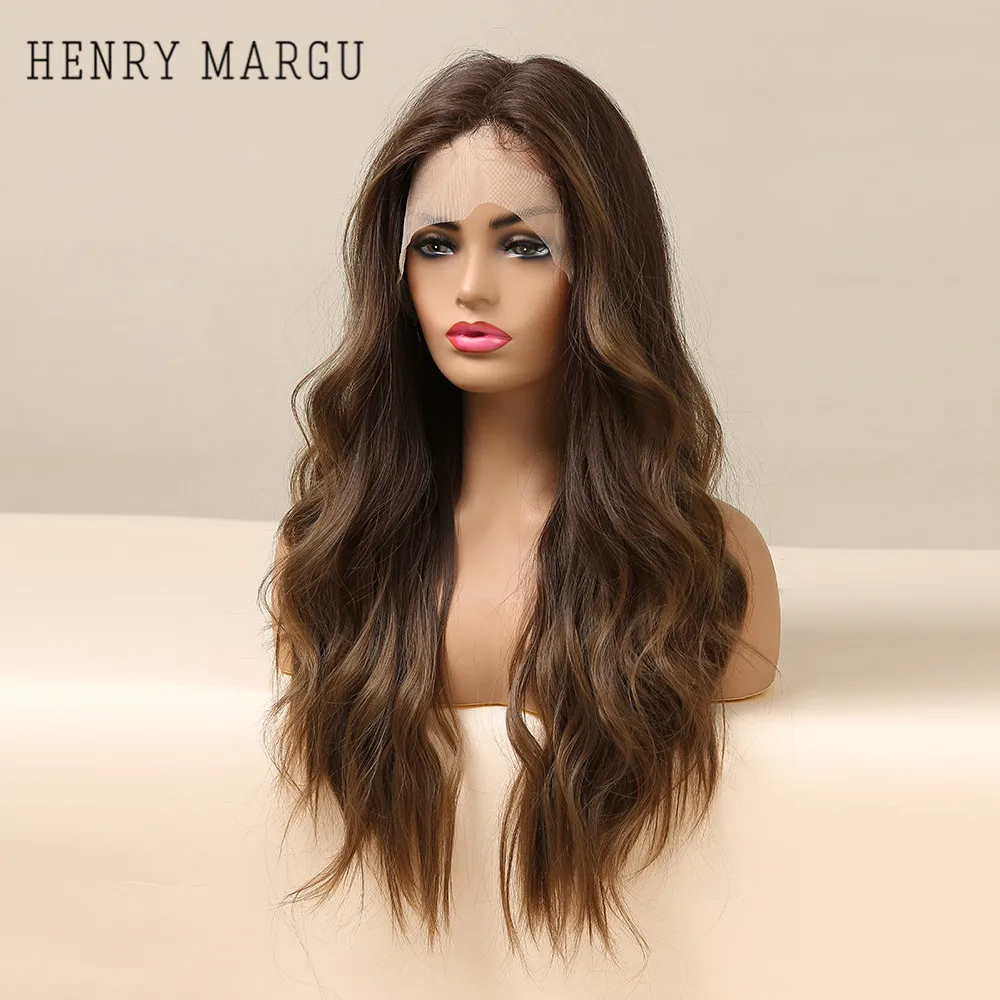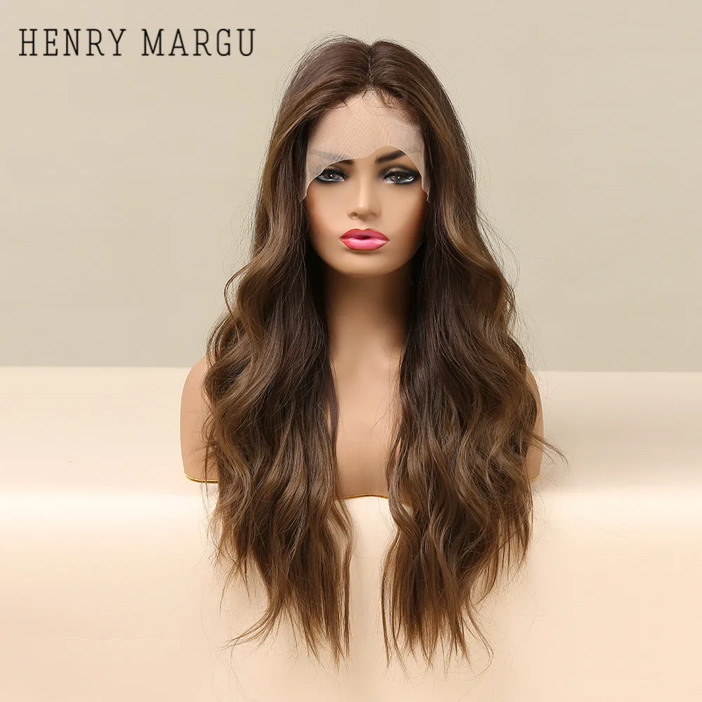 Женские парики с длинными волнистыми кружевами HENRY MARGU, коричневый парик из синтетических волос, термостойкие, повседневные, вечерние, натуральные волосыНаши парики используют высококачественные, безопасные и удобные материалы от каждого синтетического волокна до каждой сети, и мы стремимся предоставлять простые, модные, натуральные, легкие и удобные продукты для париков.