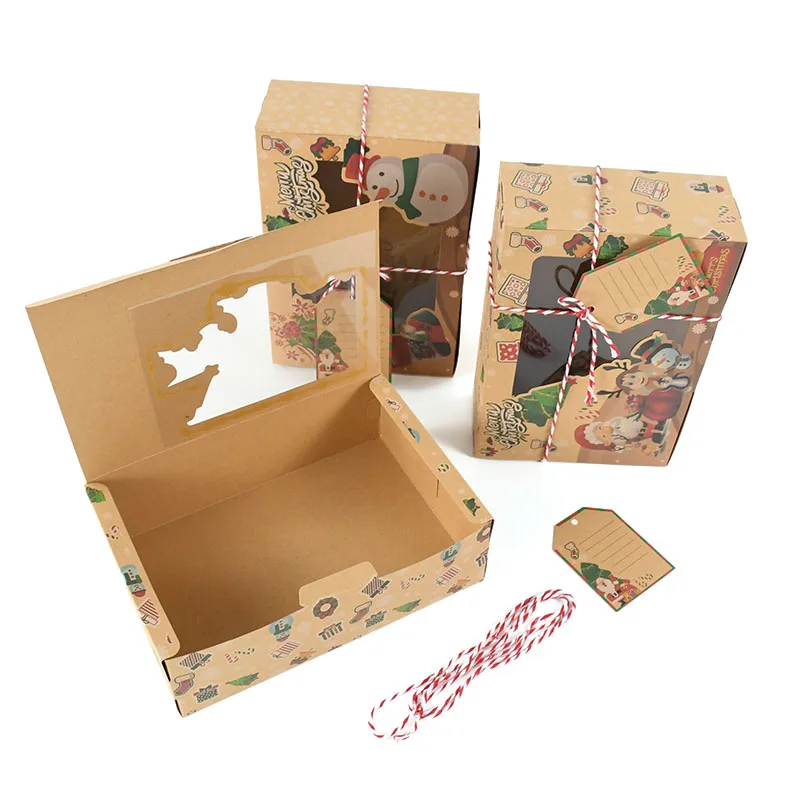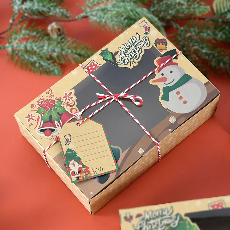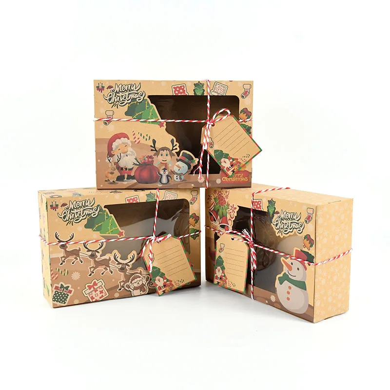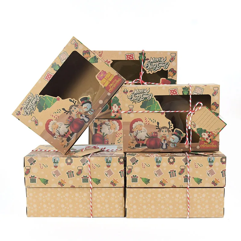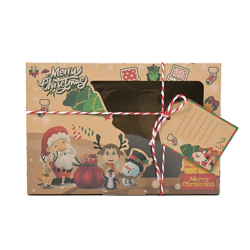 9 штук рождественские подарочные коробки Рождественский проект упаковочная бумажная коробка дизайн Санта-Клауса с прозрачным окном на заказ именная бирка 22 см