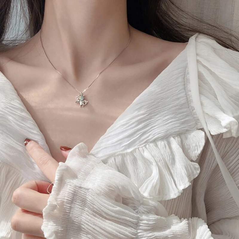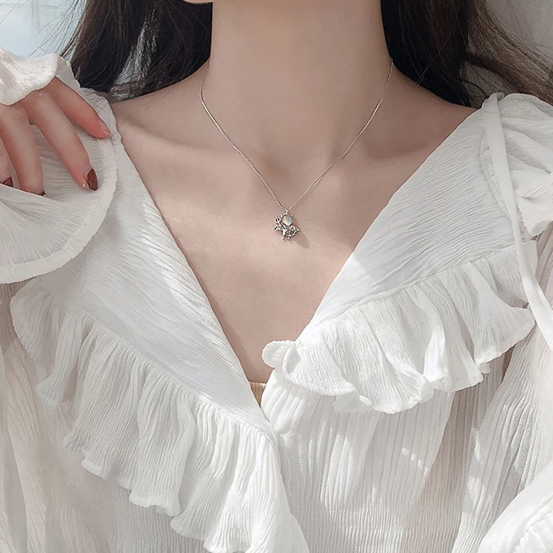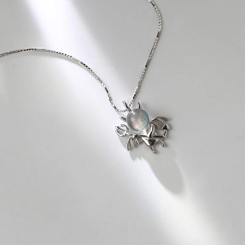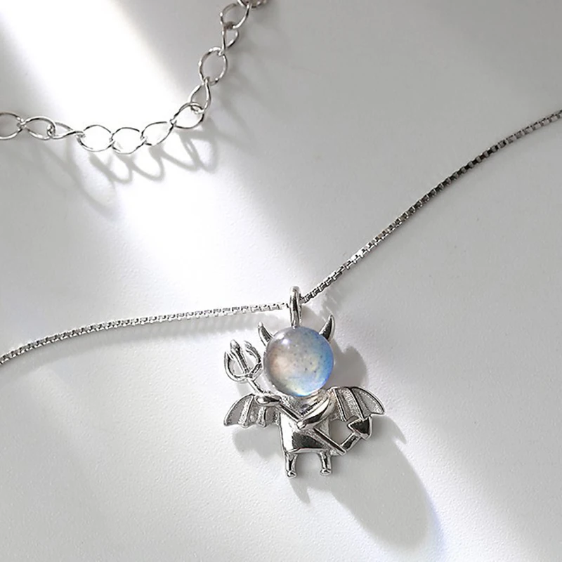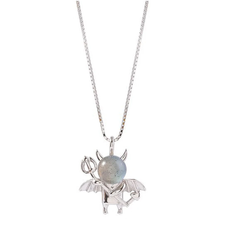 Кулон с лунным камнем, ожерелье для женщин и девушек, милый маленький дьявол, серебряный цвет, цепочка до ключиц, ювелирные изделия для вечеринки, аксессуары, подарок KAN255
