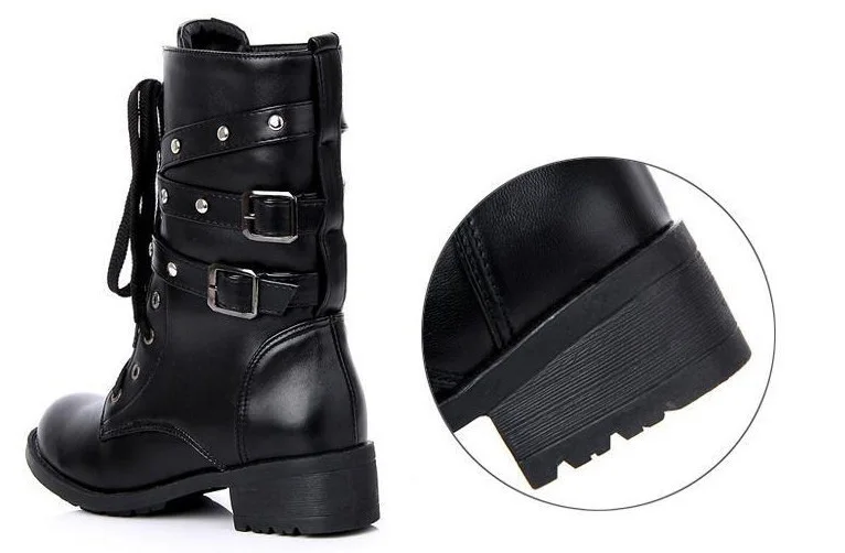 Женские мотоциклетные ботинки из ПУ кожи, до середины икры
