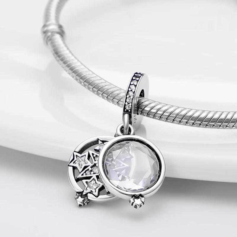 Серебряный, подходит для оригинального браслета Pandora, ожерелье серии Звездное небо, двусторонние подвески в виде звезды, женские модные ювелирные украшения сделай сам, кулон