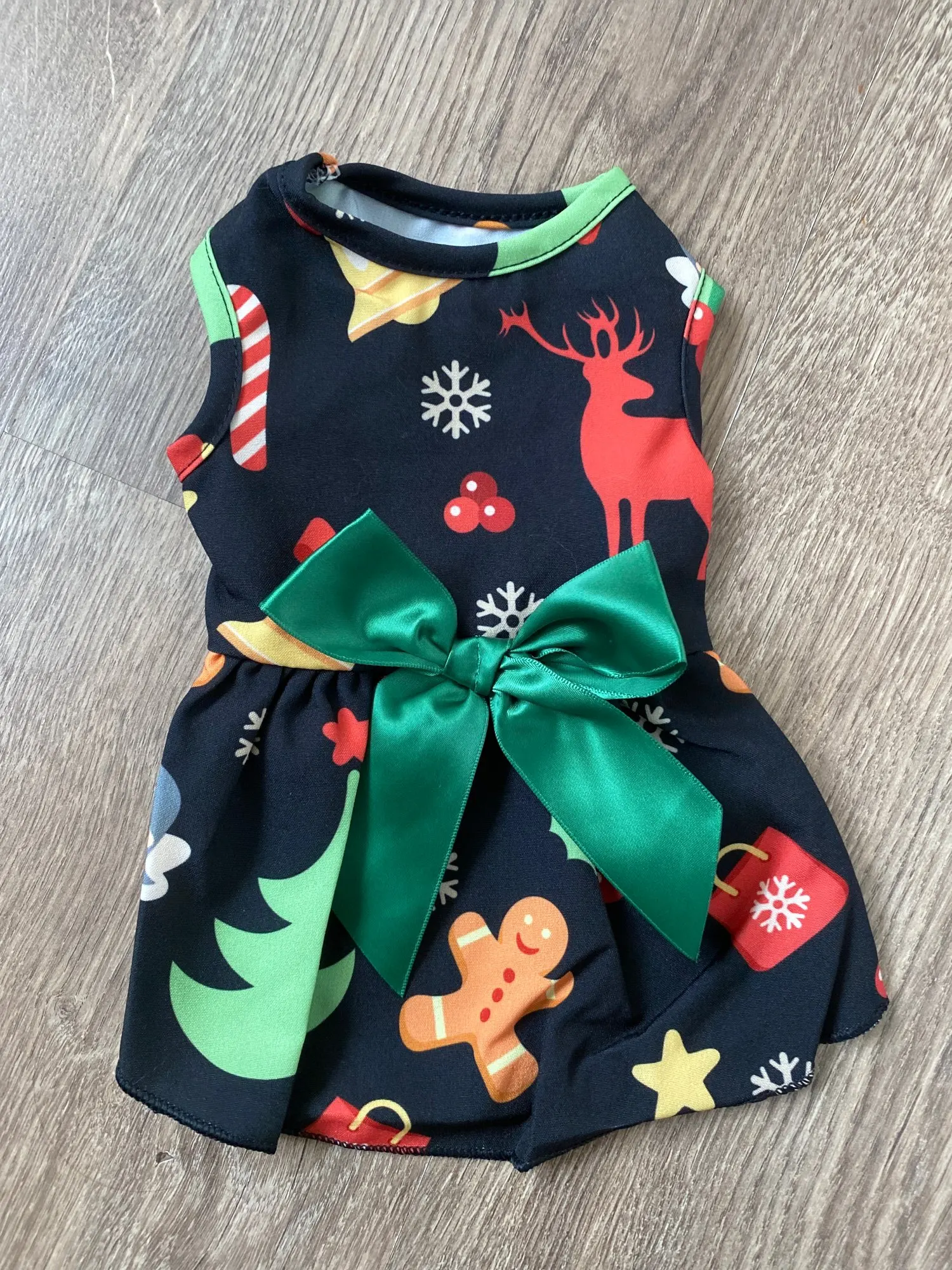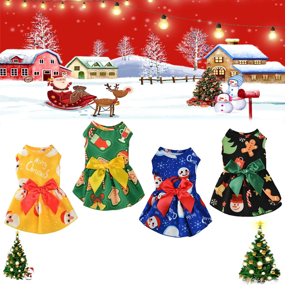 Вечерние ный праздничный костюм с принтом, рождественское платье для собаки, одежда без рукавов для маленьких и средних чихуахуа, йоркширских собак, костюм, товары для домашних животных