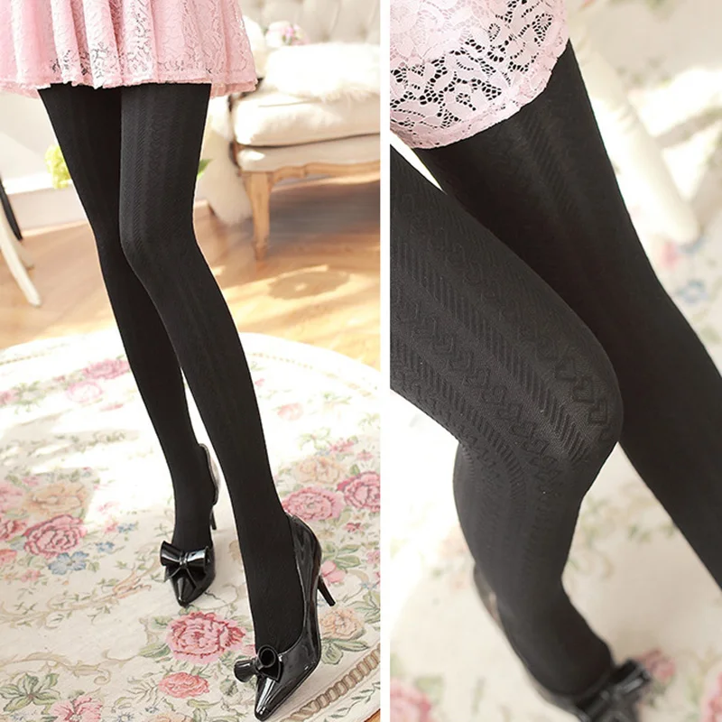 Колготки женские, нейлоновые, утепленные, с 3D рисунком сердца