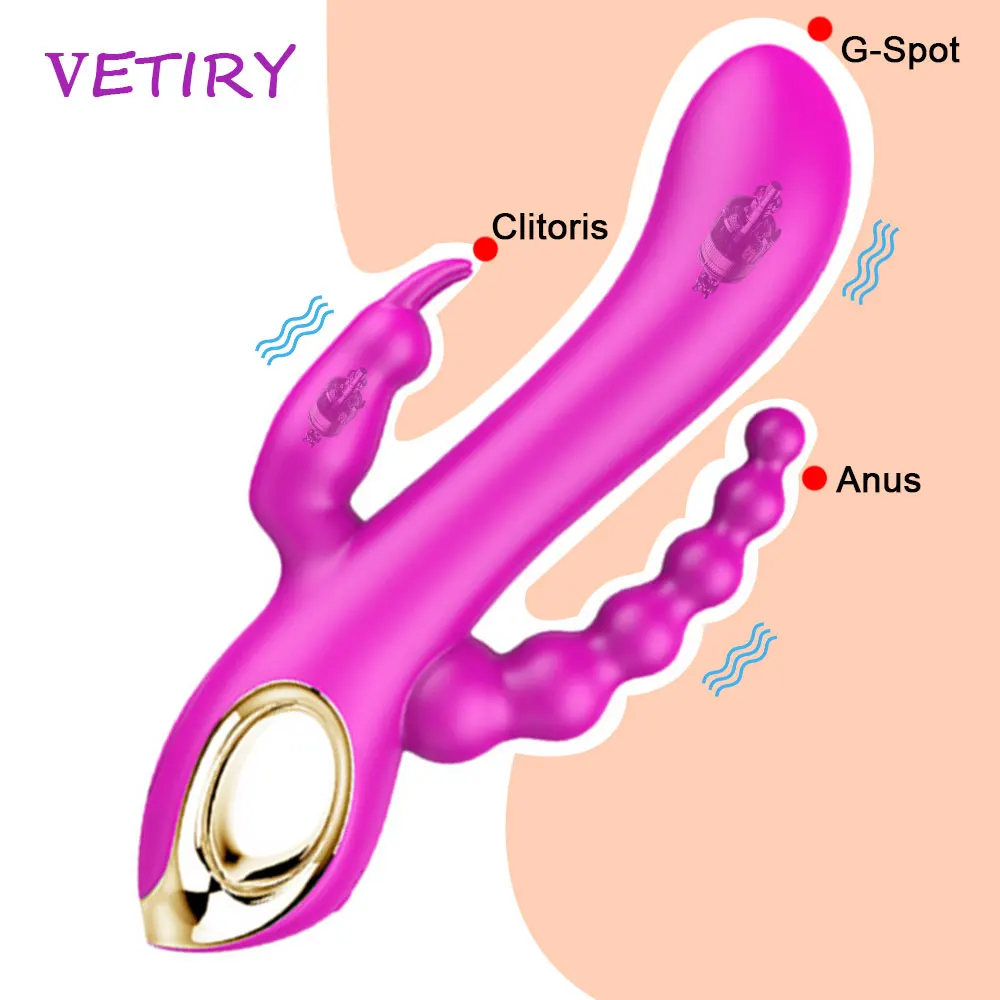 Женский Вибратор, массажер точки G, Стимулятор клитора, вагинального, анального секса, Женский мастурбатор, тройная вибрация