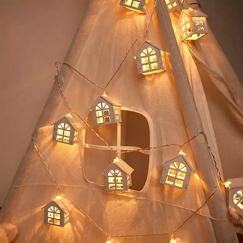 Светодиодная гирлянда, 2 м, для спальни, украшение для дома, рождественское освещение, уличный деревянный дом, теплый белый свет, праздничное освещение, праздничное освещение