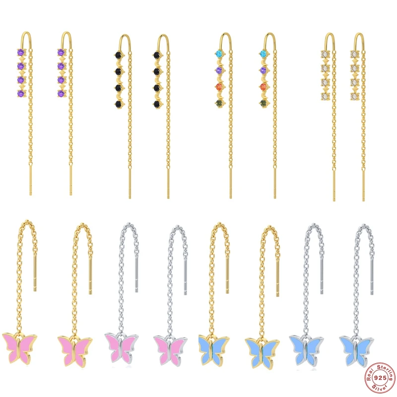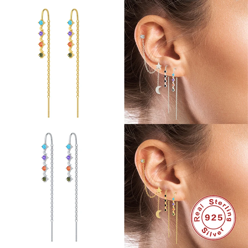 Женские серьги-гвоздики из серебра 100% пробы с разноцветным цирконием