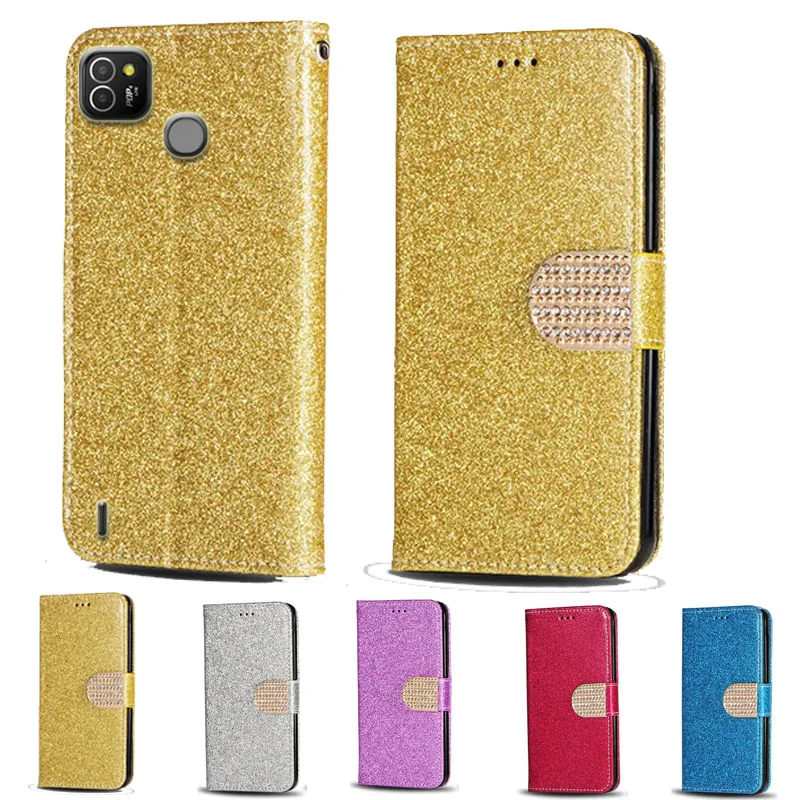 Для Tecno Pouvoir 4 Роскошный Блеск Алмазный Кожаный чехол-книжка с...