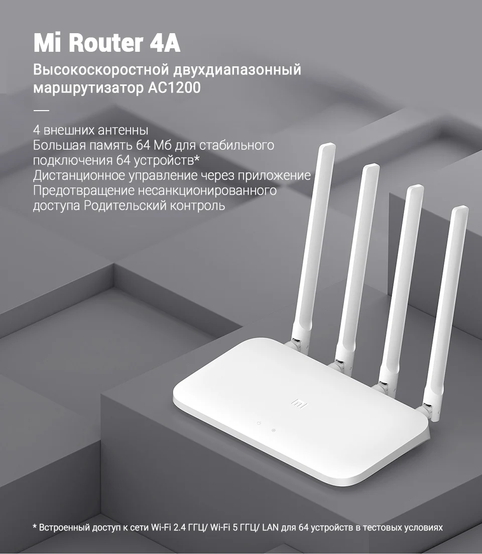 Роутер Xiaomi Mi 4A Gigabit, 2,4 ГГц, 5 ГГц, Wi-Fi, 1167 Мбитс, Wi-...