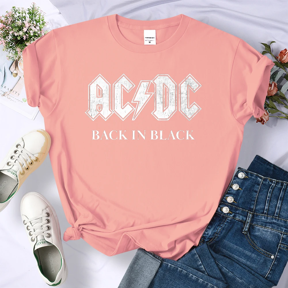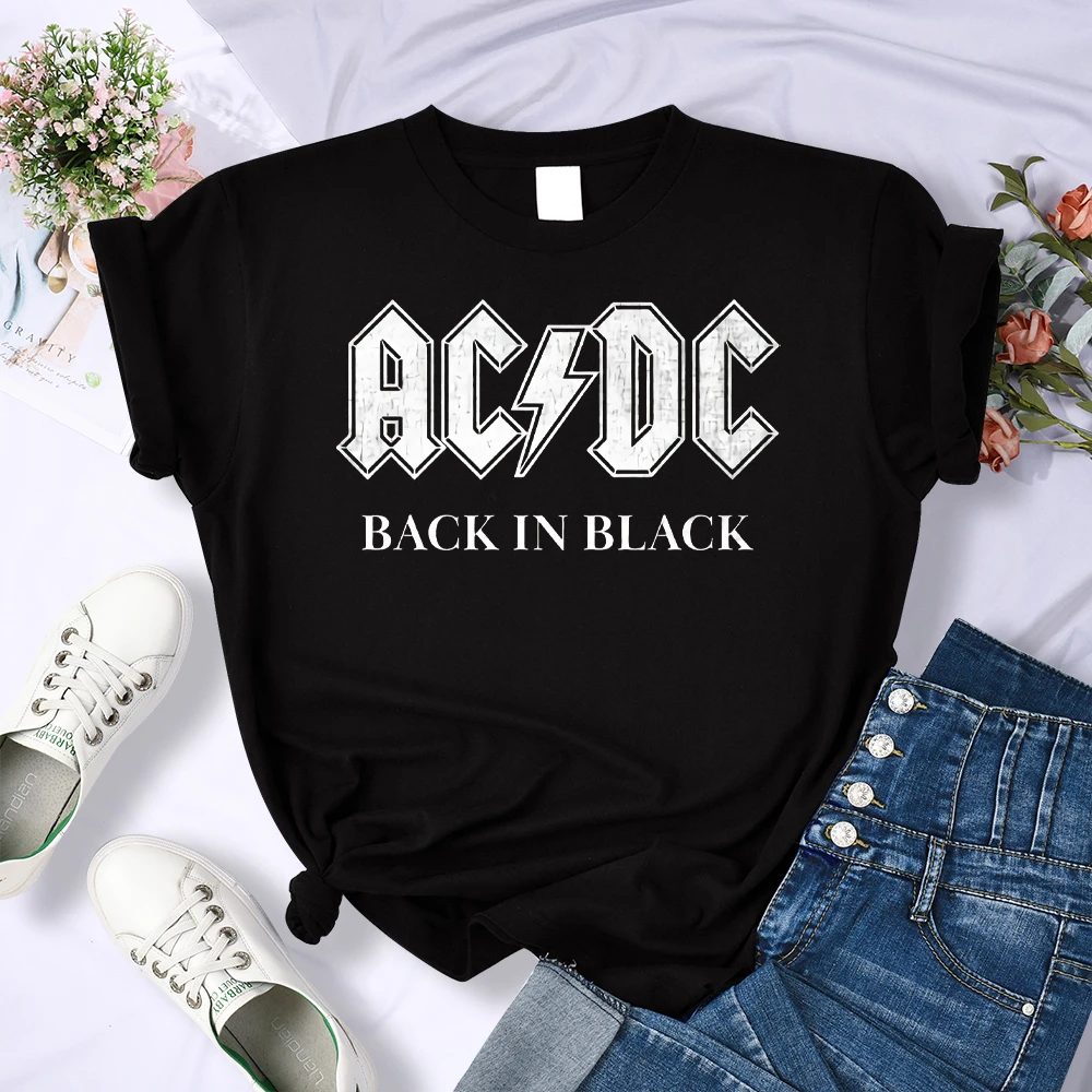 Женская футболка с принтом на спине и переменного тока, черная Повседневная темпераментная футболка, модная удобная футболка с круглым вырезом, женская футболка оверсайз