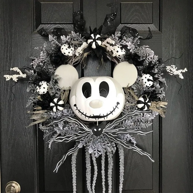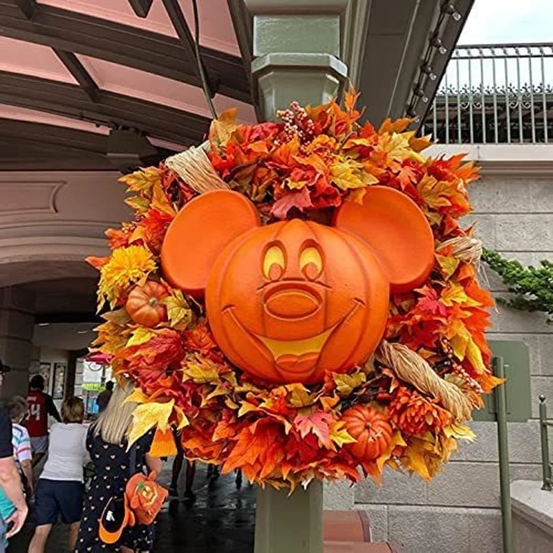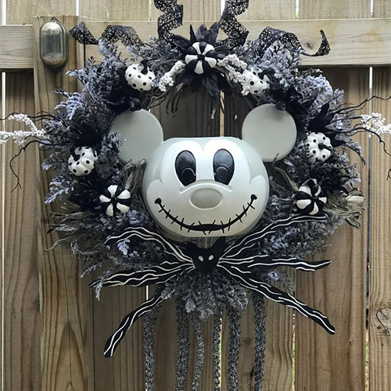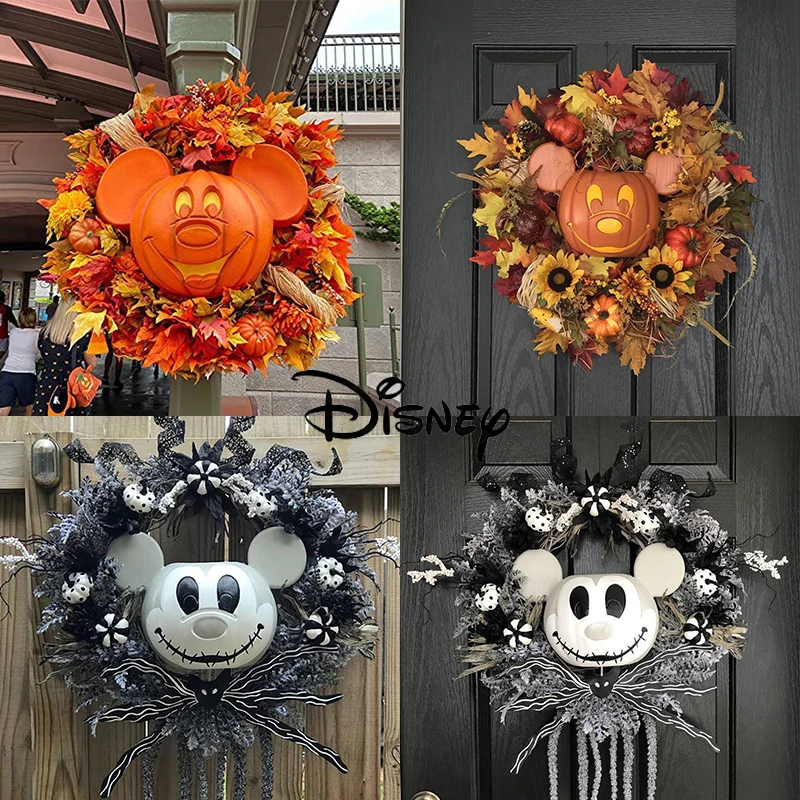 Венок на Хэллоуин с изображением Диснея Микки Мауса, тыквы, фермерского дома, венок с привидениями, Уличный настенный Декор для входной двери, привидение, смайлик на Хэллоуин