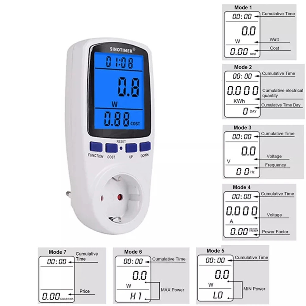 Семь режимов отображения, большая емкость аккумулятора, очень энергосбережение, большой ЖК-экран, легко читается.1. Большой ЖК-экран, легко читается.2. Измеряет напряжение, частоту, ток, коэффициент мощности, мощность, минимальную и максимальную мощность и записывает накопленный киловатт-час кВт · ч, время, дату и стоимость электроэнергии.3. Семь режимов отображения, нажмите кнопку «функция» для переключения.4. Предупреждение о перегрузке отображается на ЖК-дисплее.5. Дисплей является ненормальным или кнопка не имеет ответа на сброс.6. Встроенный 3,6 V перезаряжаемый аккумулятор (никель-металл-гидридный), экономии энергии и экономное потребление энергии.7. Легко контролировать ваши счета за электричество: нажмите OK, значение, дисплей и Установите кнопки для установки цены на электричество8. Встроенный резервный аккумулятор: 2X1.5 в перезаряжаемый аккумулятор позволяет измерителю перемещаться и оставаться видимым без потери показаний."9. Измерьте различные параметры + Функция защиты от перегрузки: мощность (Вт), энергия (кВтч), вольт, ампер, герц, коэффициент мощности и Максимальная мощность (Вт), время, дней (ваш счет за электричество в основном основан на кВтч).Большой и четкий ЖК-дисплей легко читается.""Цвет: белыйМатериал: АБС-пластик + ПоликарбонатВсего кВтч и стоимость дисплея: 0.0-9999KWh, 0,0-9999 стоимостьМощность измеритель потребеление энергии: 0,5 WДиапазон отображения напряжения: 0V ~ 9999VВилка: европейская вилкаДиапазон отображения цены: 0,00 COST-99.99COST/кВтчФактический дисплей мощности (Вт) 0 ~ 2900 ВтЧастотный дисплей: 0 Гц ~ 9999 ГцОтображение времени: от 0 секунд до 9999 днейОтображение тока (Ампер): 0.000A ~ 16.000AРабочее напряжение: 230 ВЧастотный дисплей: 50 ГцРабочий ток: максимум 16АШирокий диапазон напряжения: 230-250 В"1 * продукт + 1 * Инструкция