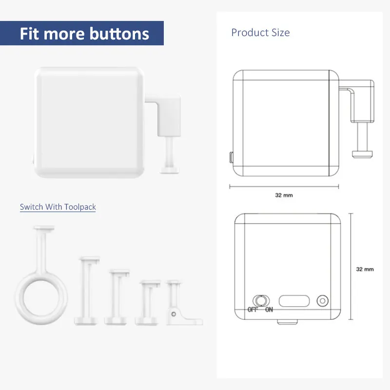 Существует также набор инструментов Adaprox Fingerbot, вы можете использовать его для работы с различными типами кнопок. Он поставляется с механическими ручками различной длины и формы.