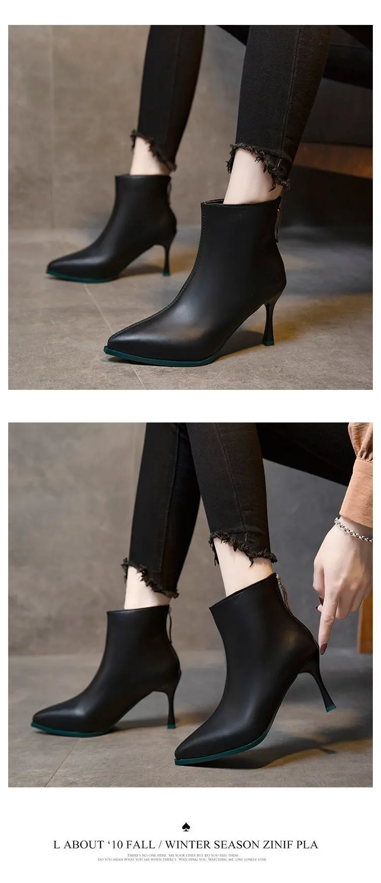 Женские короткие ботинки с острым носком, на высоком каблуке, 8 см