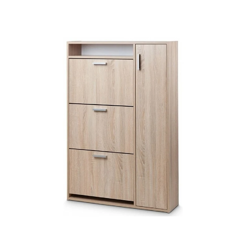 Оборудована одним закрытым отделением с тремя полками и тремя откидными секциями с ограничителями и пластиковыми кронштейнами внутри, для удобного хранения обуви. Размер изделия (ВхГхШ): 1237x255x874 мм. Вес: 33 кг. Техническое описание Тип продукции: обувница Материал: ЛДСП-16мм, кромка ПВХ-0,4, пластиковые кронштейны Размер изделия (ВхГхШ): 1237x255x874 мм Вес: 33 кг