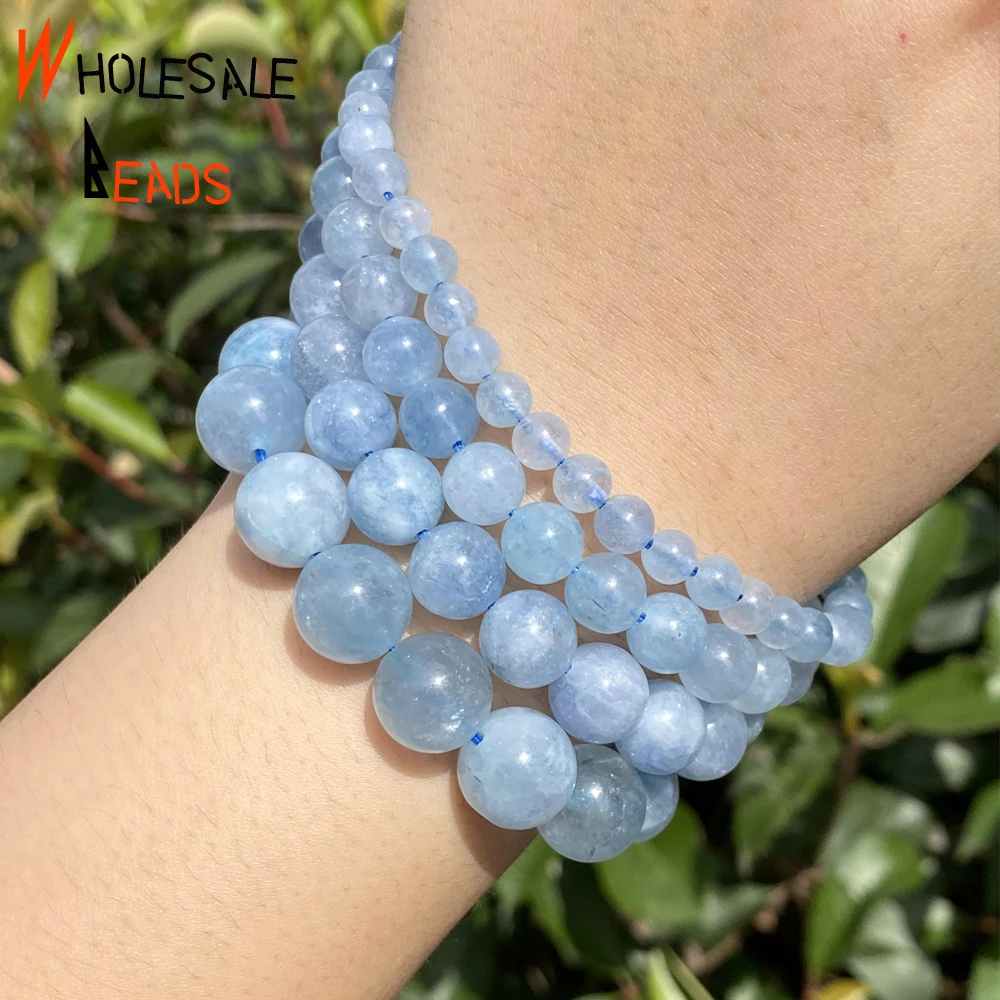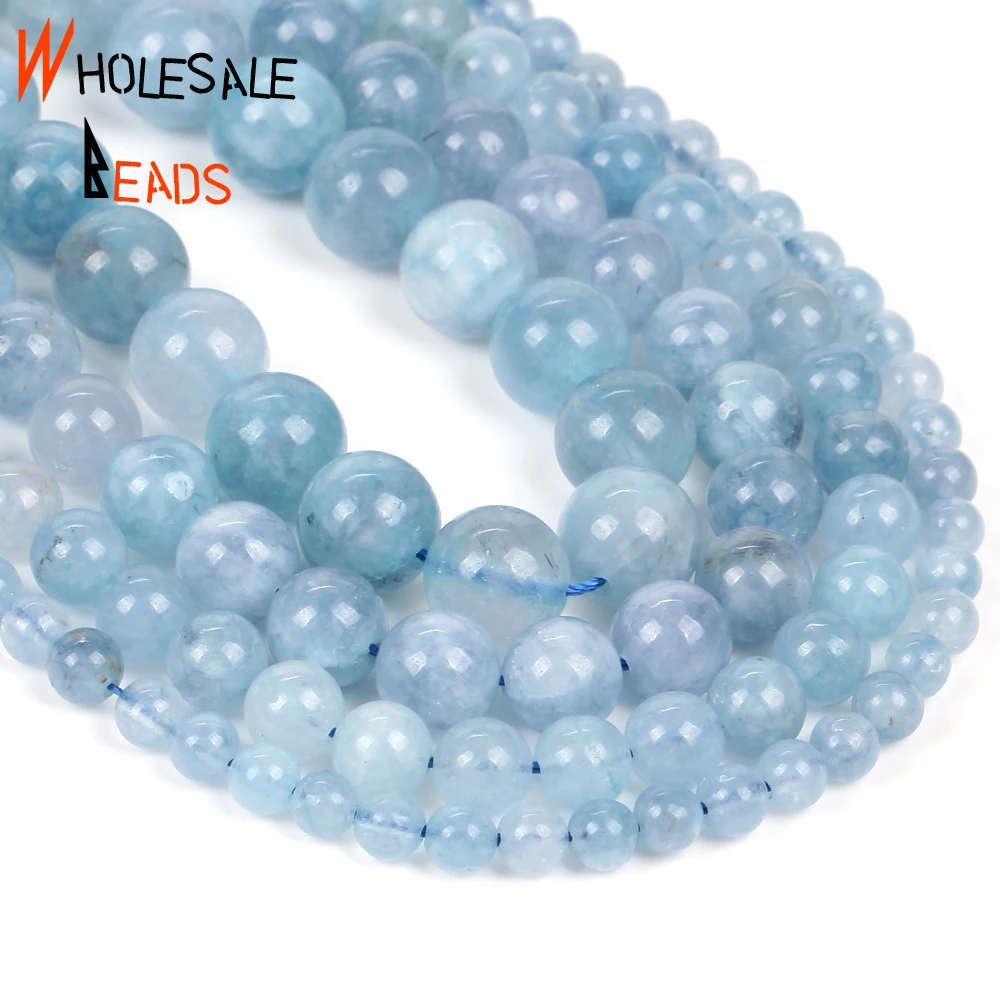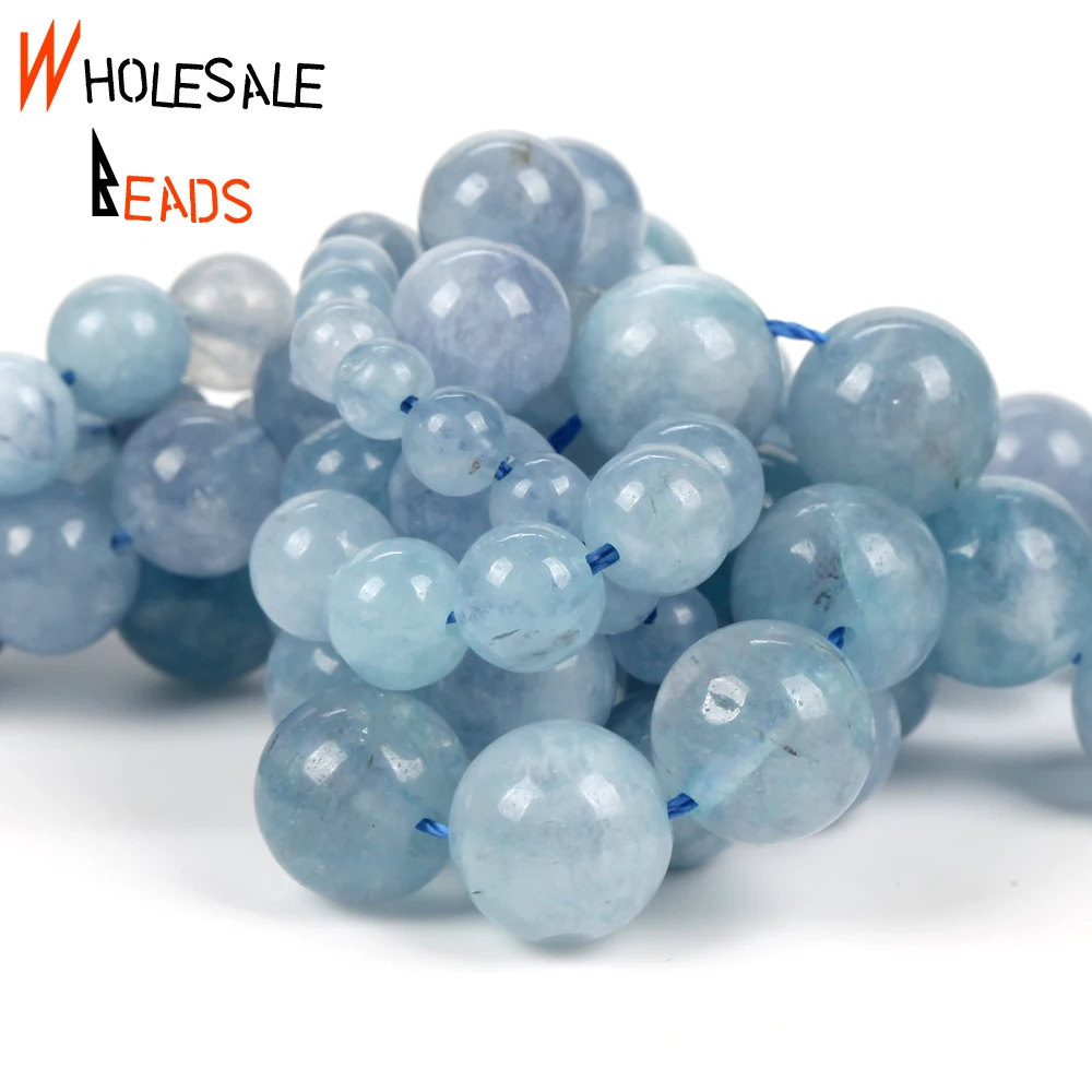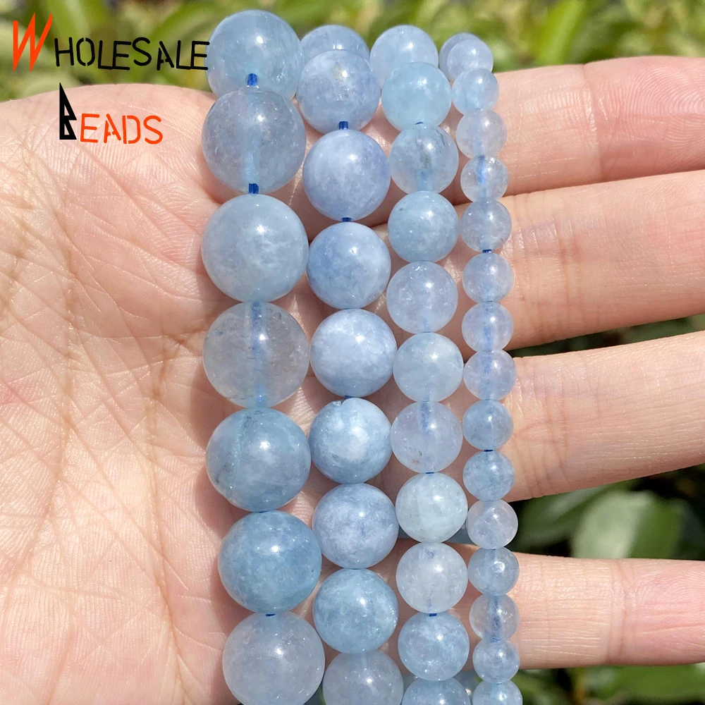 Бусины из натурального камня, аквамарины, халцедон, круглые бусины россыпью, аксессуары ручной работы для рукоделия, 6-12 мм, 15 дюймов