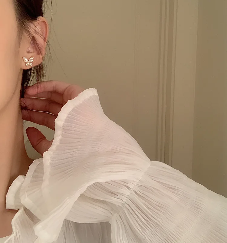 Корейские элегантные милые серьги-гвоздики Стразы с бабочками для ж...