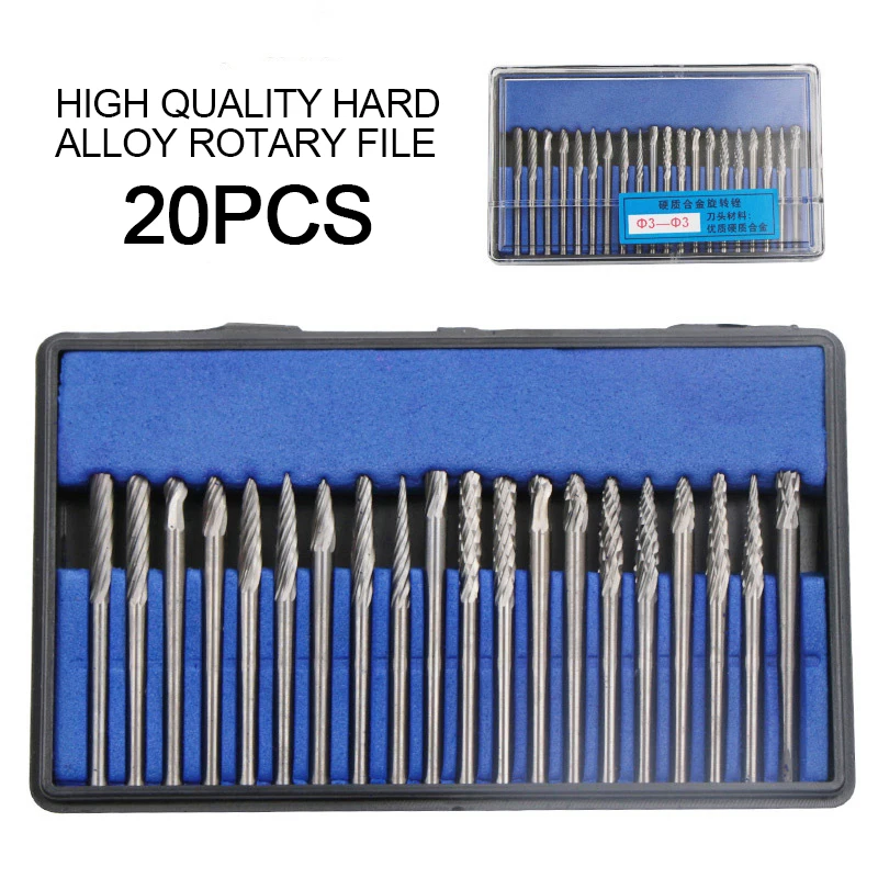 20 шт., фрезы из карбида вольфрама с хвостовиком 3 мм