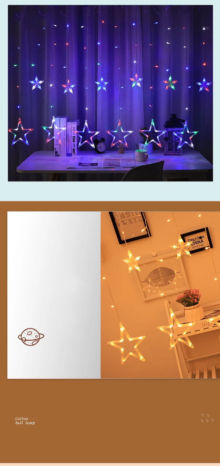 Рождественская светодиодная гирлянда со звездами и луной, гирлянда-занавеска, сказосветильник украшение для свадьбы, дома вечерние ринки, праздника