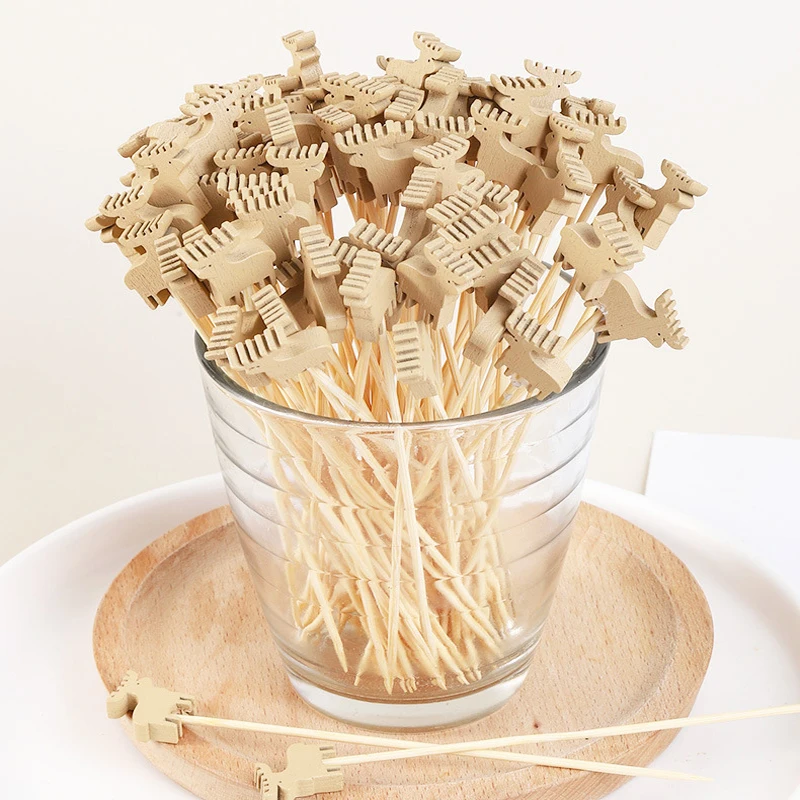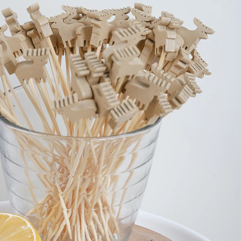 Рождественские коктейльные палочки, Дед Мороз, снежинка, снеговик, лось, фрукты, бамбуковые зубочистки для напитков, десерт, еда, украшение для закусок