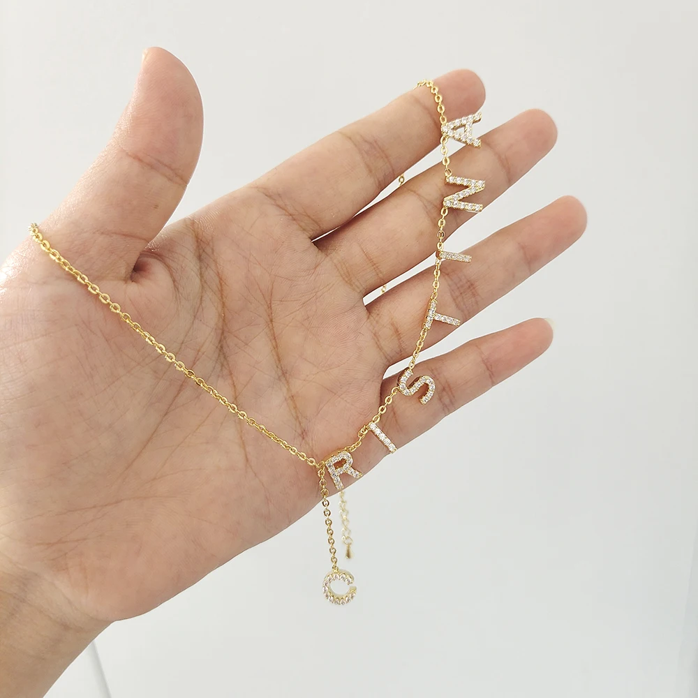 Чокер персонализированные имя Циркон Проложить ожерелья с буквой персонализированные пользовательские имя ожерелья с именами шары цепь ожерелья ожерелье с буквами