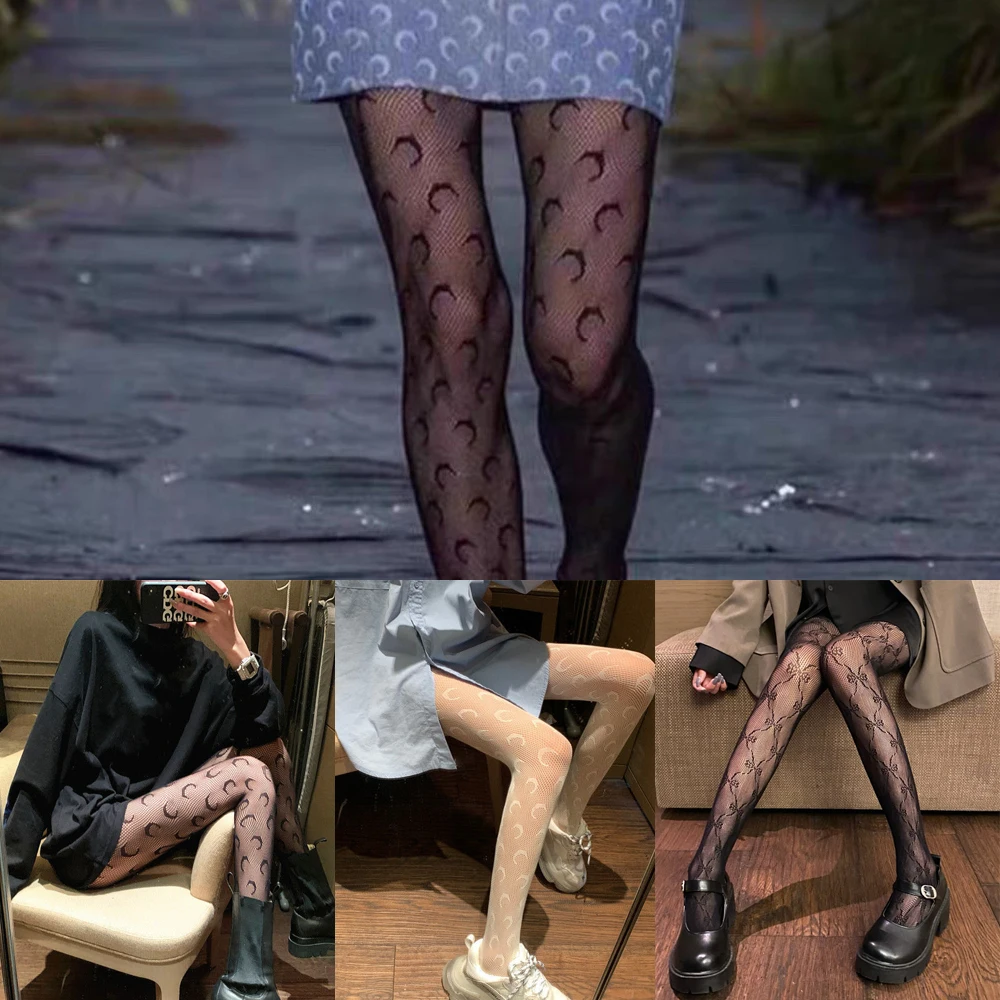 Женские черные колготки с луннымбантиком, сетчатые кружевные брюки,...