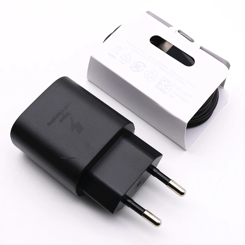 Оригинальное зарядное устройство Samsung S21 S20 5G 25 Вт Быстрая зарядка Usb Type C Pd PPS Быстрая зарядка EU для Galaxy Note 20 Ultra 10Особенности:-Супер быстрое зарядное устройство Samsung Galaxy Note 10-Максимальная выходная мощность: 25 Вт-- Штепсельная вилка европейского стандарта-- Кабель USB Type-C-Type-C-- С коробкой или без коробки-Черный/белый