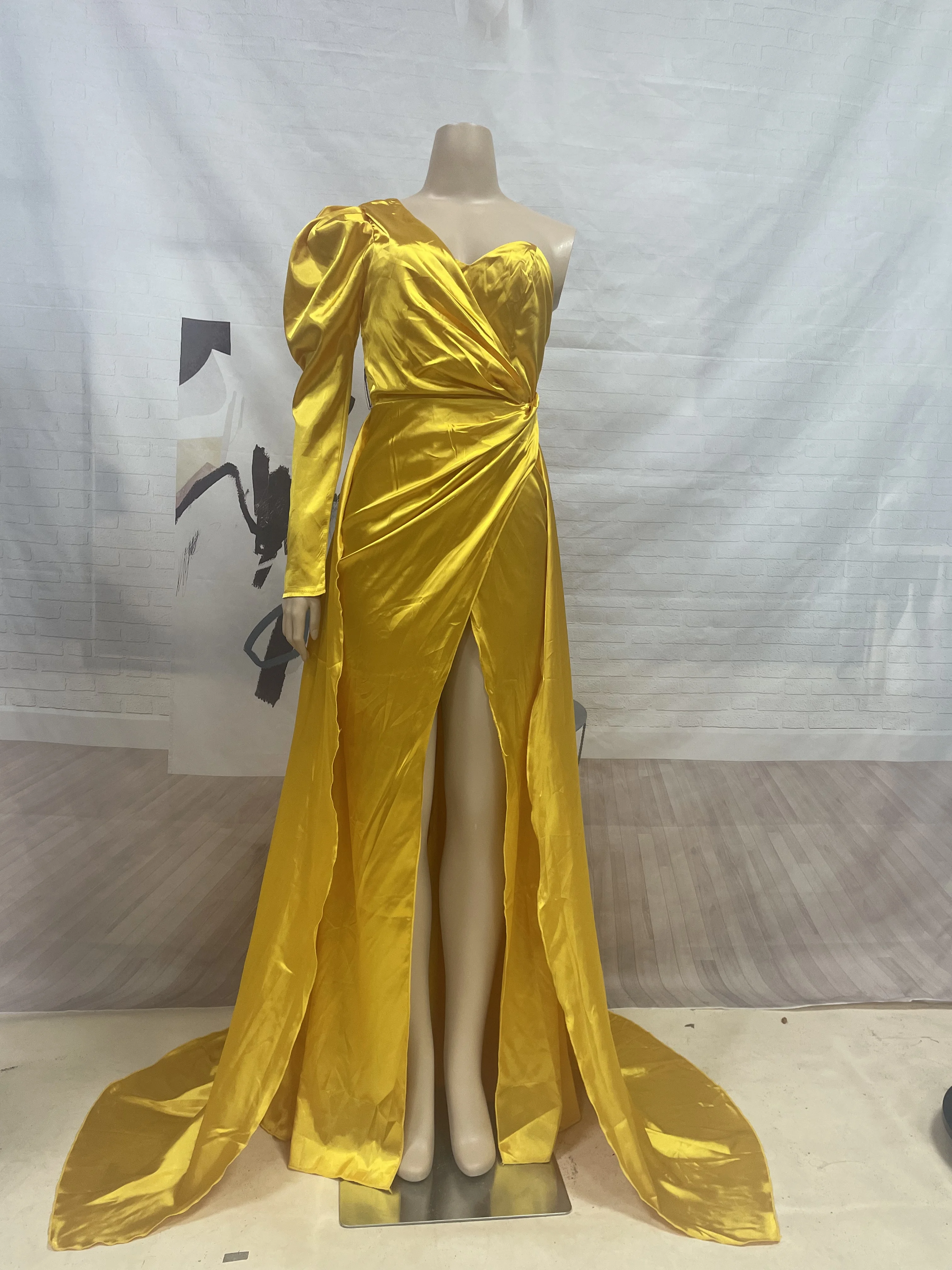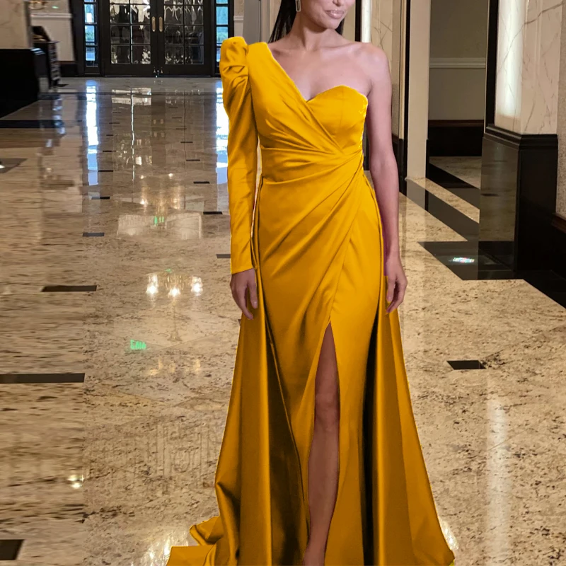 Actual Images : YesNeckline : STRAPLESSSleeve Length(cm) : FullStyle : FormalTrain : Court TrainOrigin : CN(Origin)Dresses Length : Floor-LengthSilhouette : AsymmetricalItem Type : Cocktail DressesDecoration : PleatSleeve Style : One-ShoulderOccasion : Cocktail PartyFabric Type : TaffetaBuilt-in Bra : Nois_customized : YesModel Number : F001Fashion Element : vintageWaistline : empireMaterial : Polyesterproduct name : Vestido estilo sirenakeyword : Liso de sedaoccassion : celebrity dressessize : plus size 3XLcolor : pink white yellowtype : sparkle satin formal dressball gown : celebrity dressesFormal Evening Dress : A-Line Minimalist Elegant Party