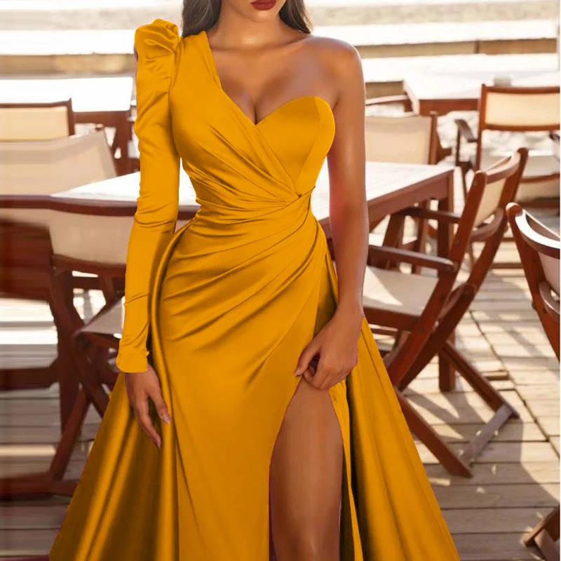 Вечерние платья на одно плечо, плиссированные Коктейльные халаты с ...