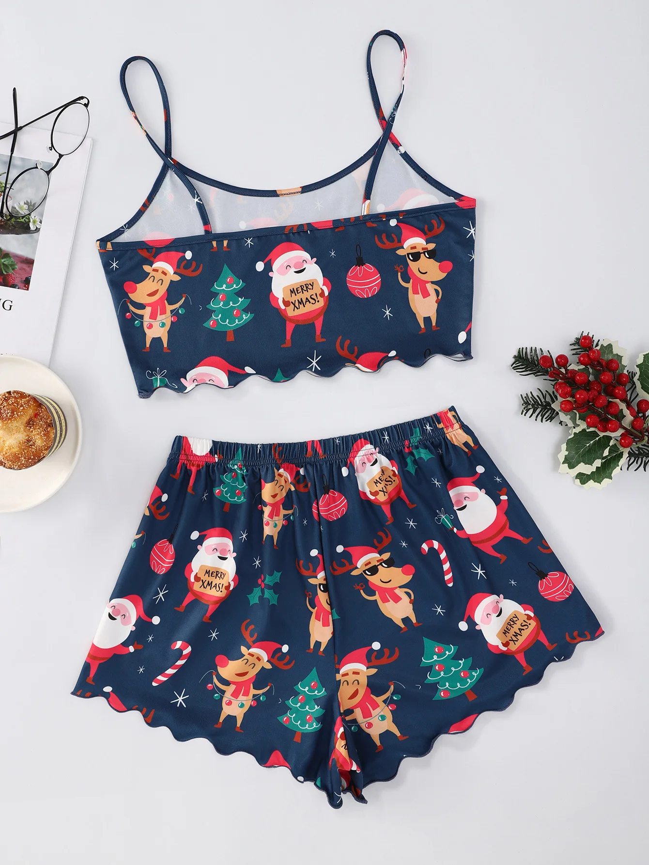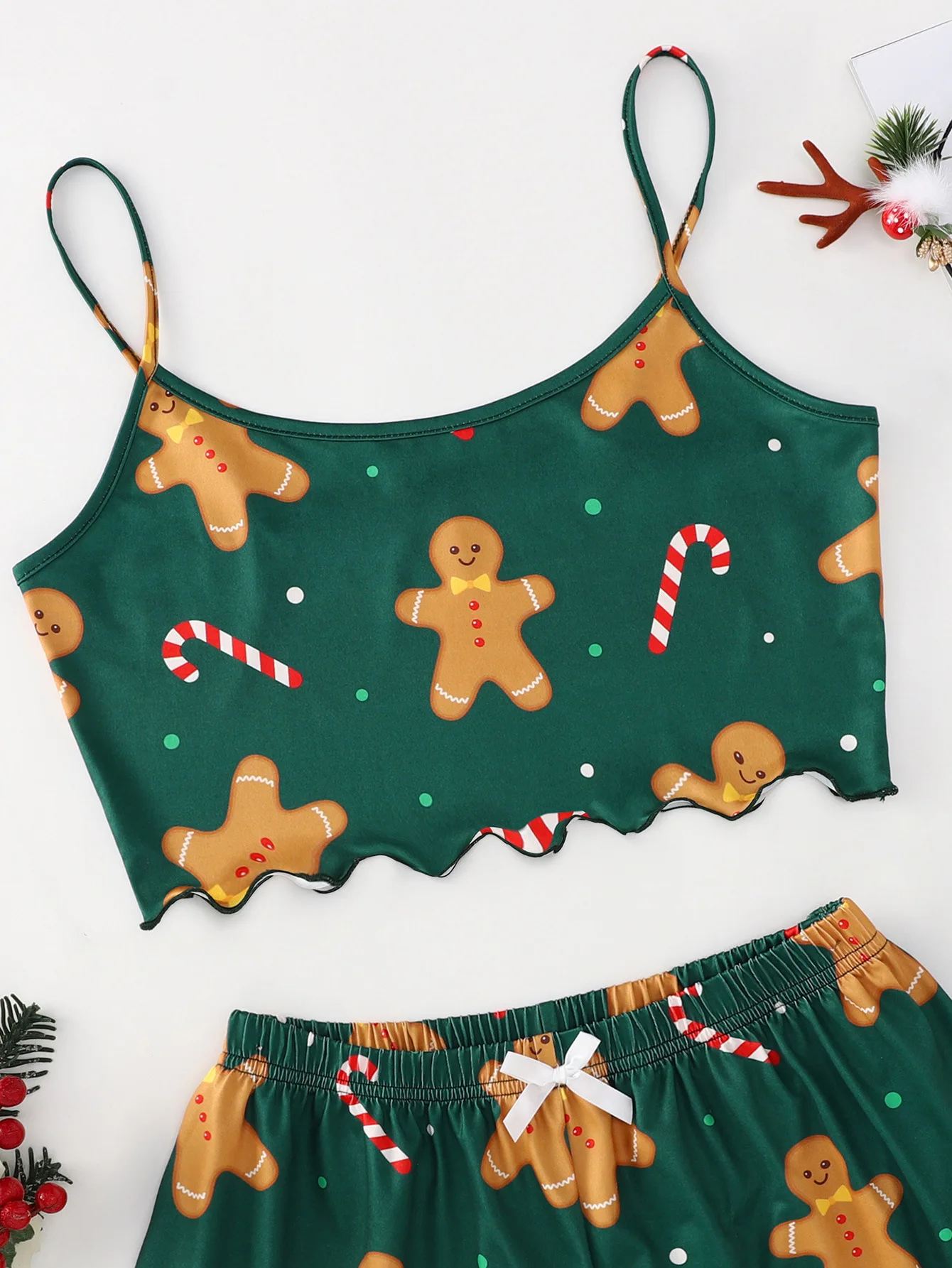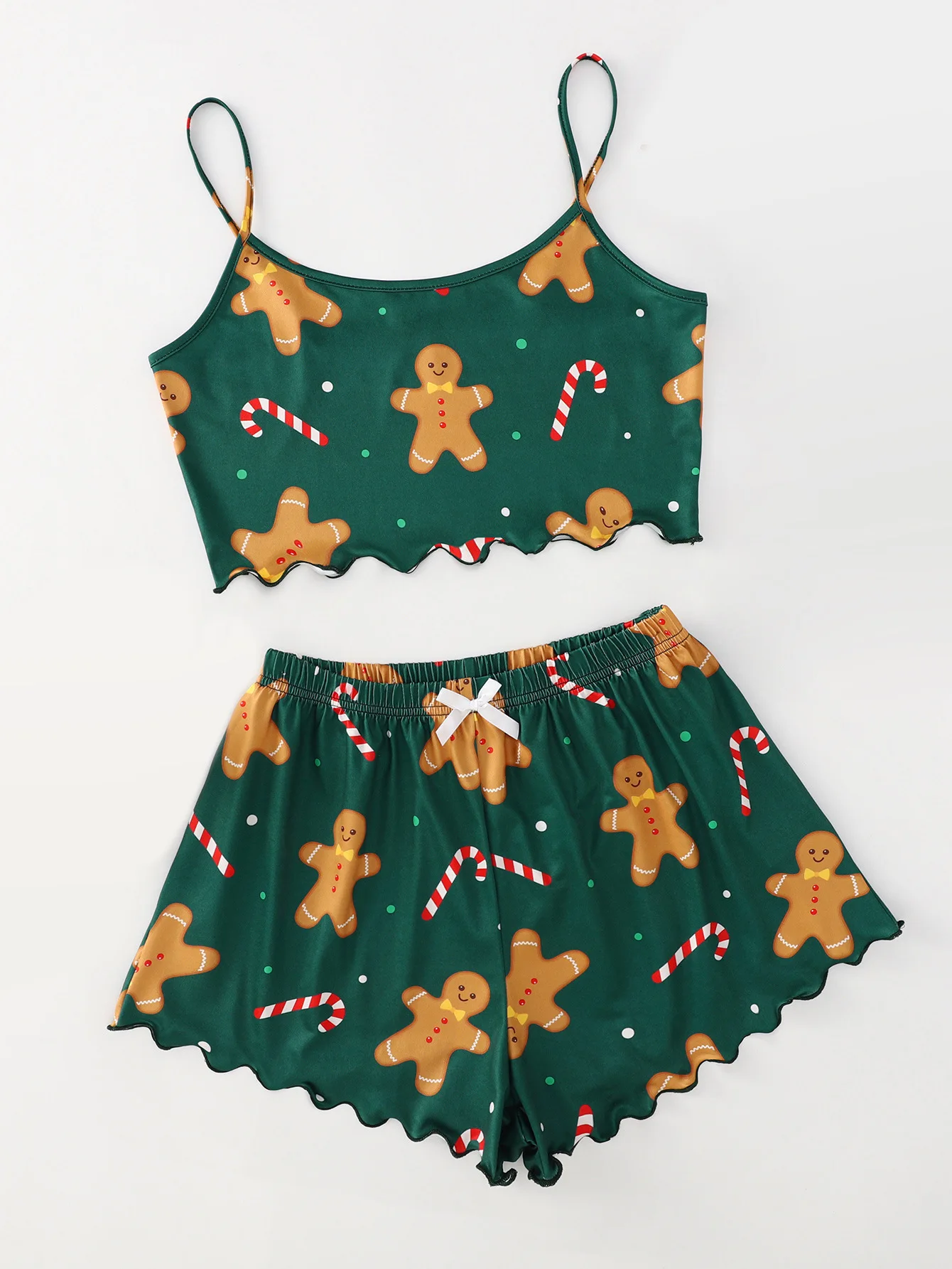 Летний пижамный комплект, милая печать печенья для женщин, шорты с ...