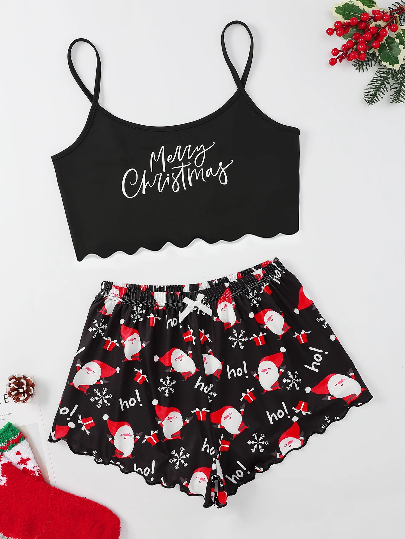 Рождественский Семейный комплект пижам с брюками, Свободный Топ на бретелях-спагетти, нижнее белье, осенняя одежда для сна, Женский комплект Pj