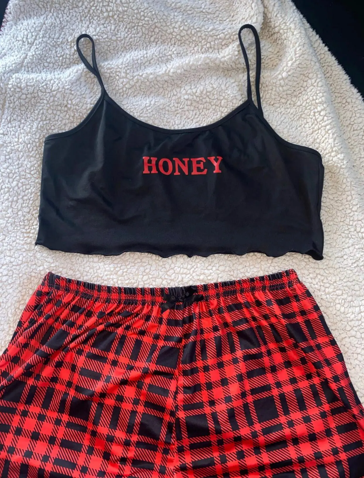 Пижамный комплект, на тонких бретелях, с буквенным принтом, без рук...