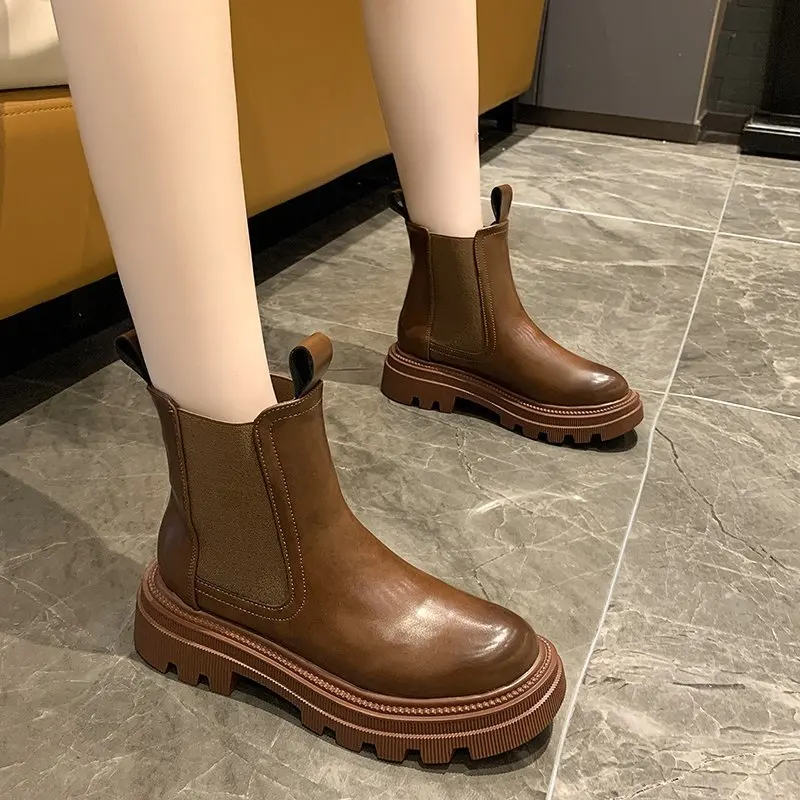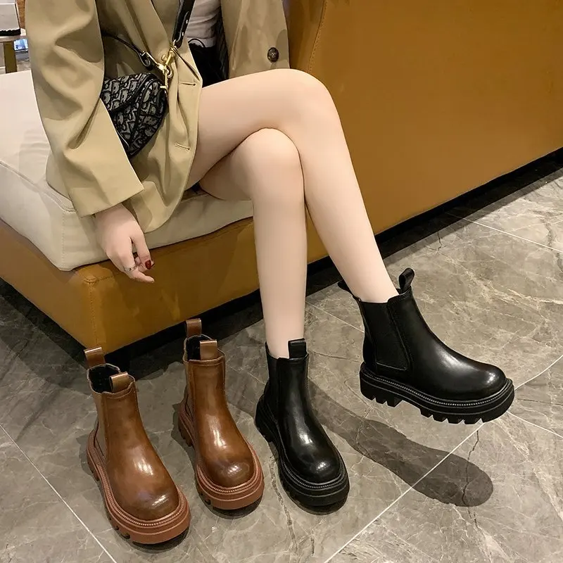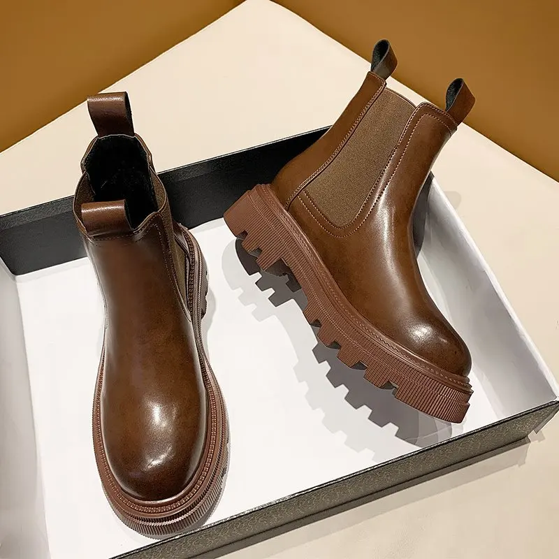 Осенне-зимние женские ботинки челси 2021 plate-forme коричневые пол...