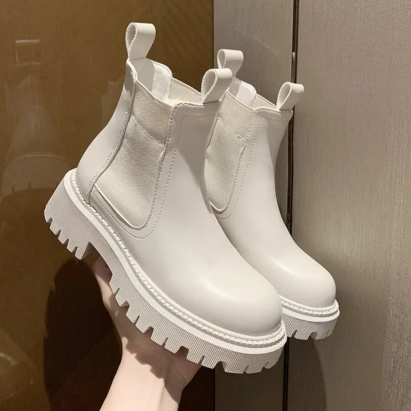 Женские ботинки челси на платформе, белые полусапожки на меху, коро...