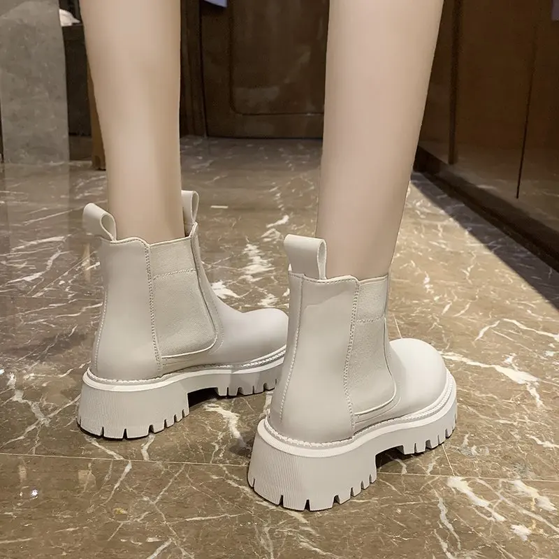 Женские ботинки челси на платформе, черные, бежевые или белые полус...