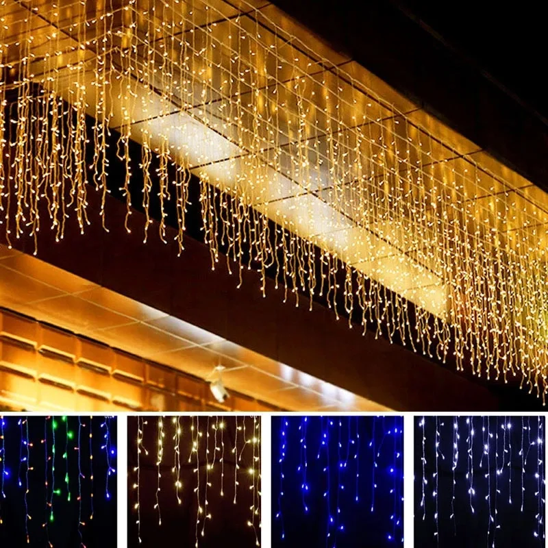 Рождественская подсветка, 5 м, зернистая занавеска, капли дождя, свисающие на 0,4-0,6 м для нового года, дома, вечеринки, фотообои