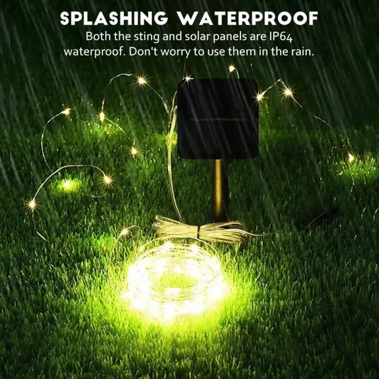 2 режима освещения --- мигание/Постоянное включение.Легко установить --- эти солнечные сказочные огни тонкие и гибкие. Таким образом, вы можете легко создавать нужные формы, их также легко хранить. СВЕТОДИОДНЫЕ гирлянды прекрасно подходят для наружных рождественских украшений.Эффективное поглощение и Конвертация --- светодиодный Рождественский свет, разработанный с солнечной панелью и перезаряжаемой батареей, Солнечная гирлянда может работать около 8 часов ночью, если панель поглощает достаточно солнечного света в течение дня.Инструкции:1: нажмите переключатель вкл./выкл., светильник будет работать, и светильник будет автоматически заряжен в течение дня (светильник не включен) и автоматически горит ночью.2: нажмите клавишу mode, чтобы установить требуемый режим освещения.Характеристики:Цвет: теплый белый/холодный белый/РазноцветныйИсточник питания: СолнечнаяПанели солнечные: 0,6 WАккумулятор: 50/100 светодиодов: 600 мАч, 200 светодиодов: 800 мАч.Время работы: 6-8 часовПосылка1 * светодиодная гирлянда1 × солнечная панель1 × кол