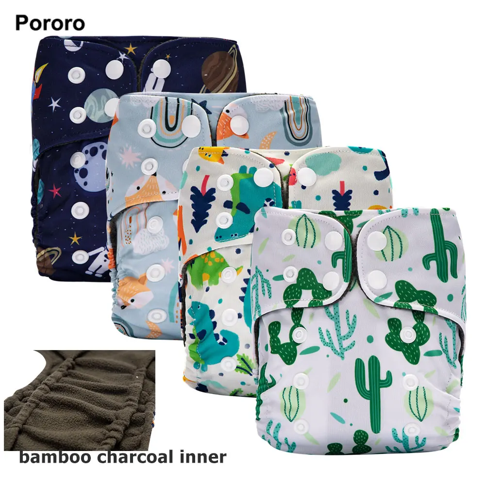 Многоразовые детские подгузники Pororo для новорожденных с бамбуковой древесной флисовой внутренней тканью, экологичные Подгузники 0-3 месяцев с двойной ластовицей