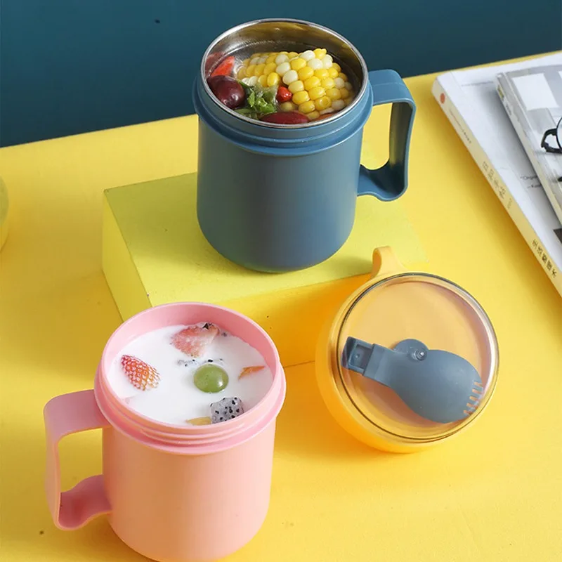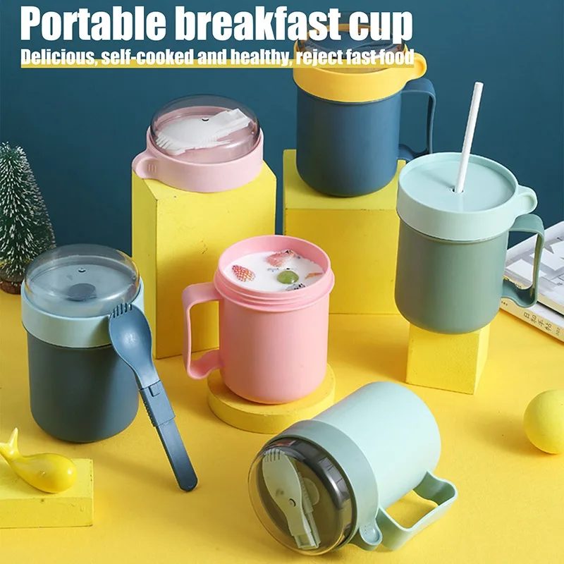 Портативная чашка для завтрака с крышкой и ложкой, многофункциональная чашка для микроволновой печи, чашка для овсяной муки, кружка для хлопьев, орехов, йогурта, контейнер для завтрака