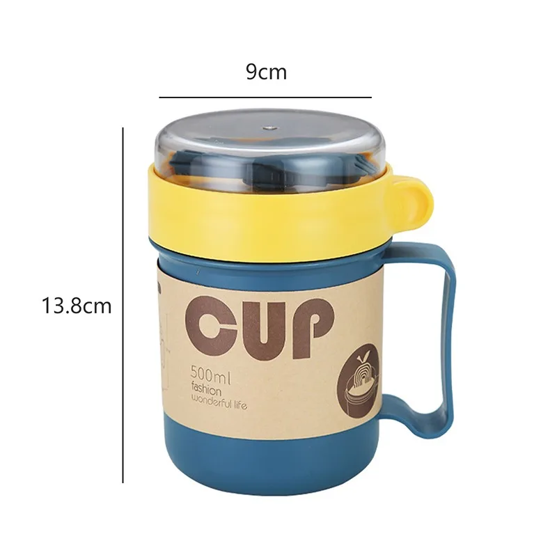 1. Внешний вид-светильник лаконичный и простой в использовании.2. Уплотнение не протекает в супе, ручка спроектирована, удобная и нескользящая рукоятка.3. Многофункциональная чашка для супа, легко носить с собой, когда вы дома или когда выходите4. Простая и стильная чашка для супа, компактная и практичная, более удобная в переноске.