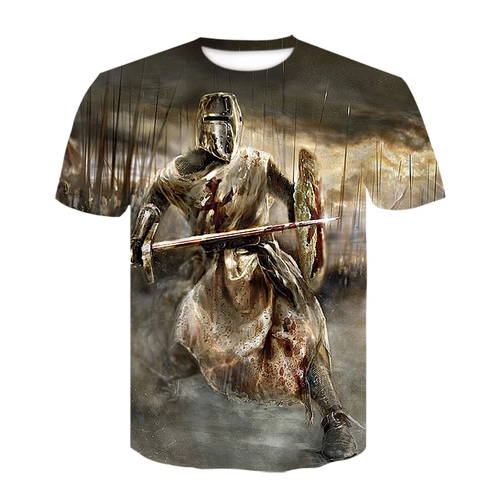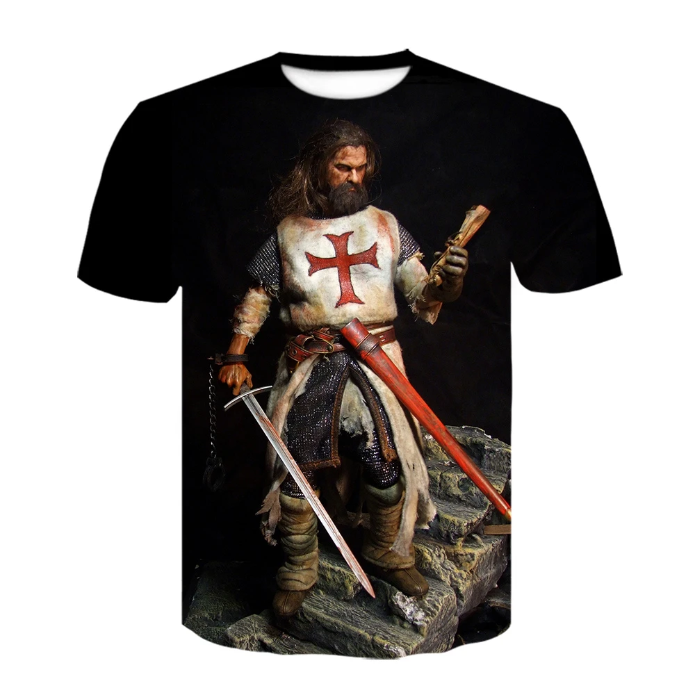 Мужская футболка с 3D принтом рыцарей-тамплиеров, летняя Уличная По...