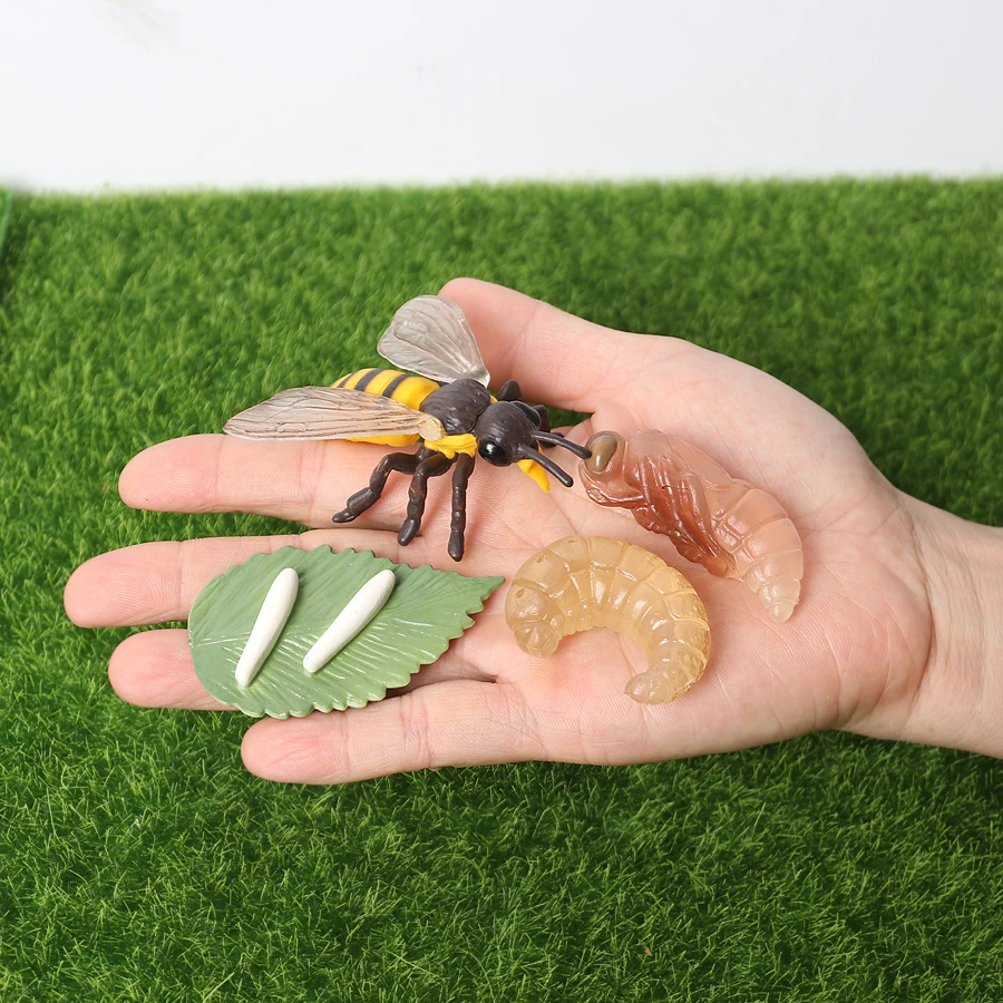 Имитация насекомых пчела жизненный цикл игрушка 4 шт Набор показывает жизненный цикл медовой пчелы модель фигурки миниатюрные развивающие игрушки