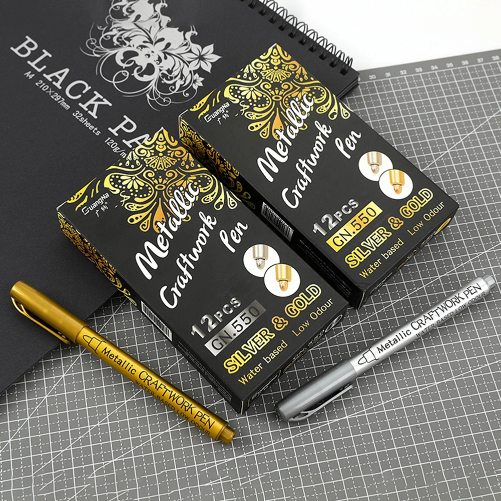 Маркеры для рисования, золотые и серебряные, металлические, водосто...