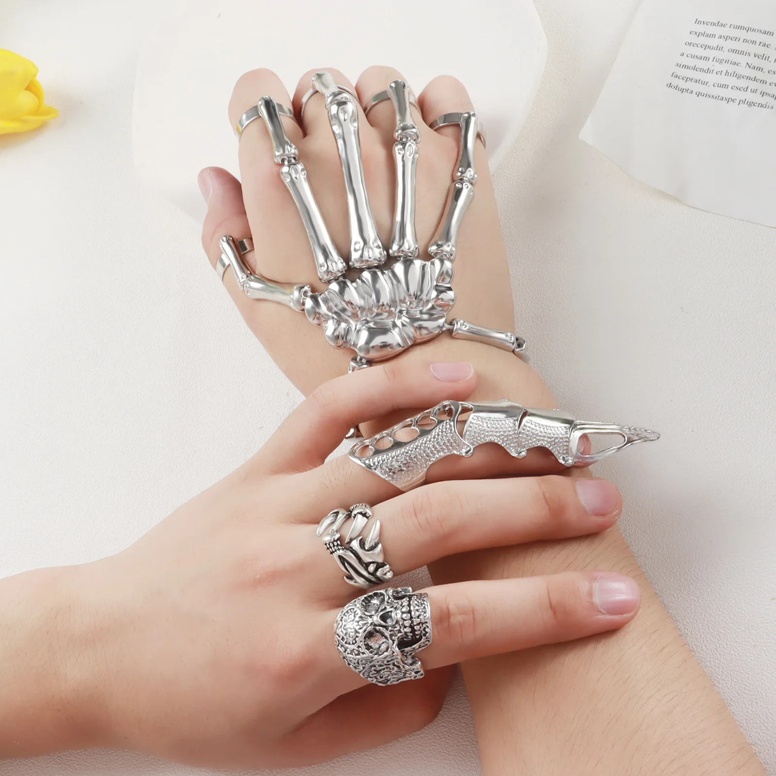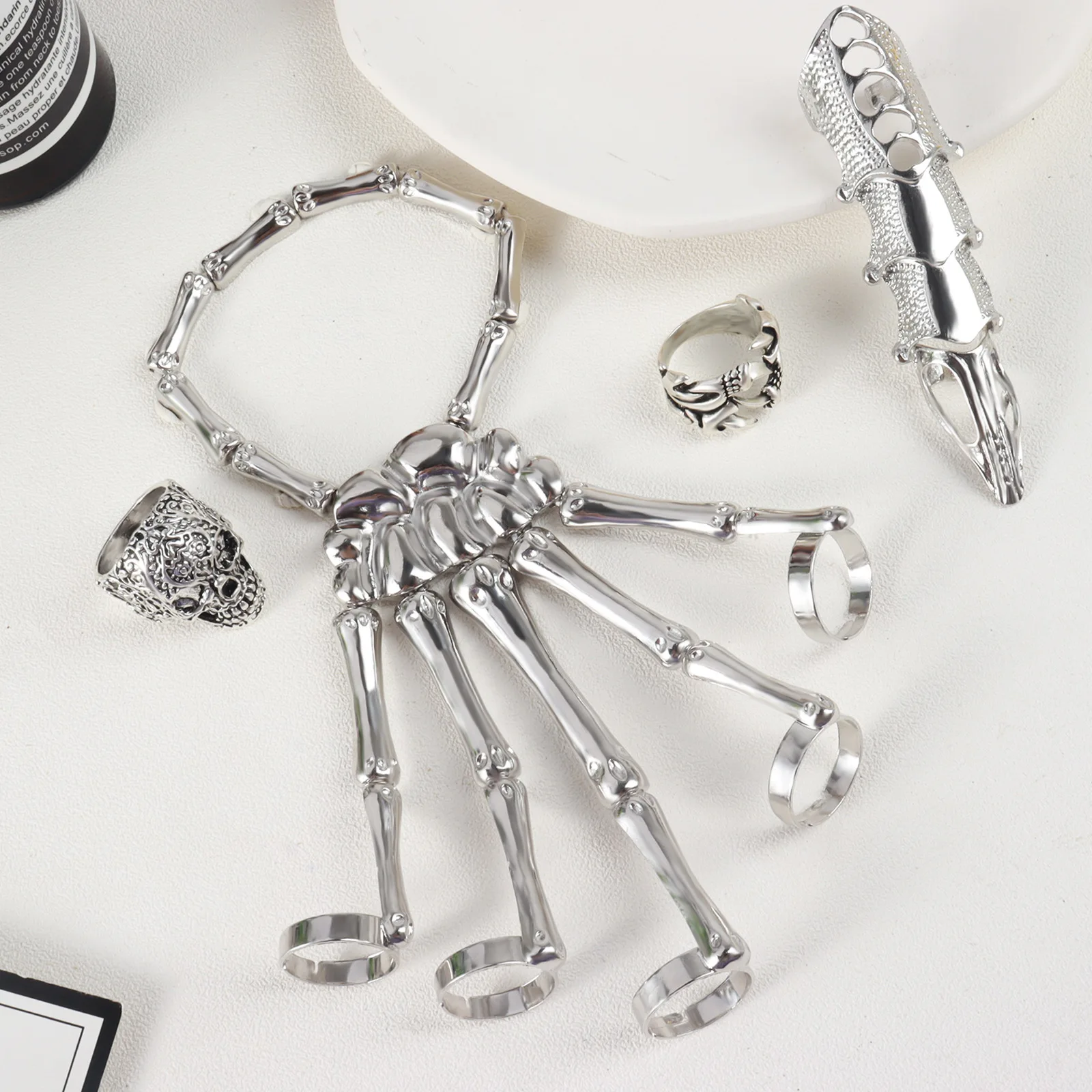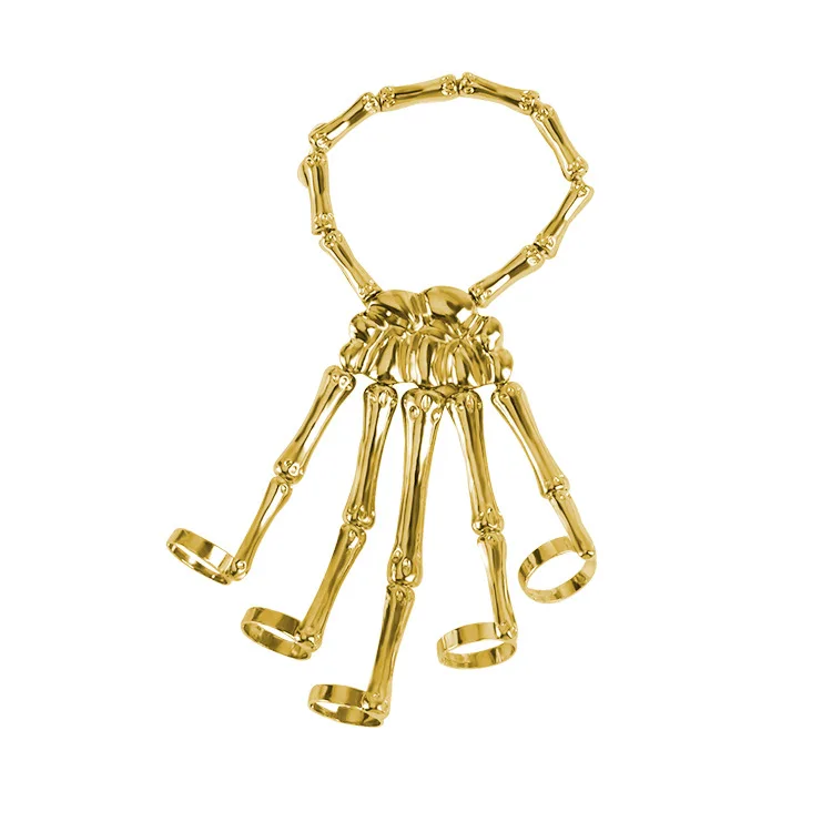 Браслет-цепочка с кольцом на пять пальцев кость руки скелета в стил...